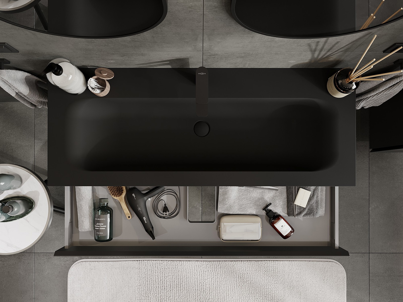 Mexen Orio koupelnová skříňka 120 cm s umyvadlem Vela, 1 zásuvka, černá mat - 91A10-12023-1-BF71-W23M71