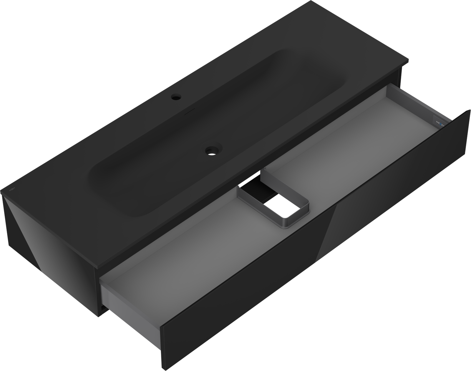 Mexen Orio koupelnová skříňka 140 cm s umyvadlem Vela, 1 zásuvka, černý lesk/černý mat - 91A10-14023-1-BF70-W23M71