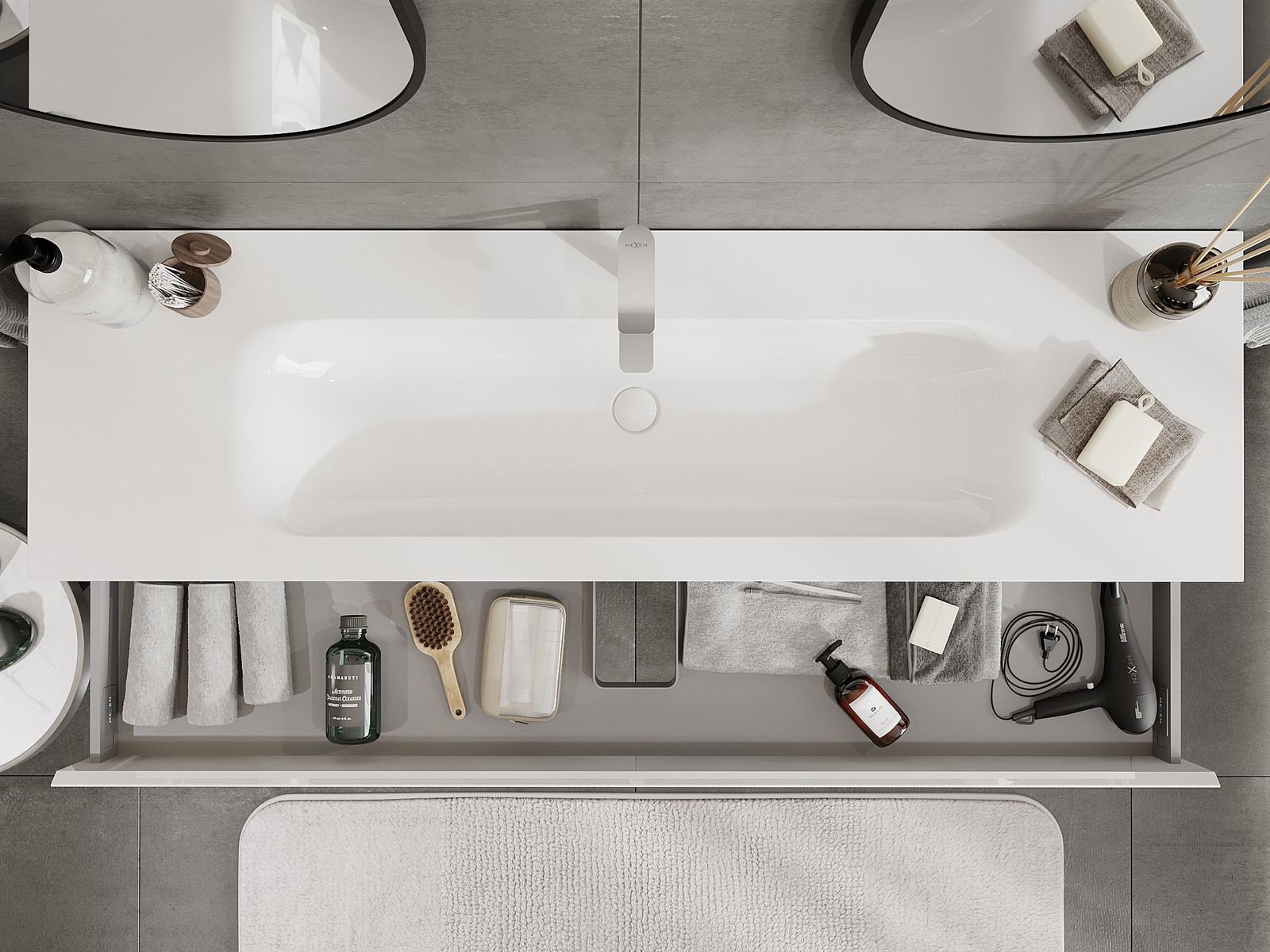 Mexen Orio koupelnová skříňka 160 cm s umyvadlem Vela, 1 zásuvka, bílý lesk - 91A10-16023-1-BF00-W23M00