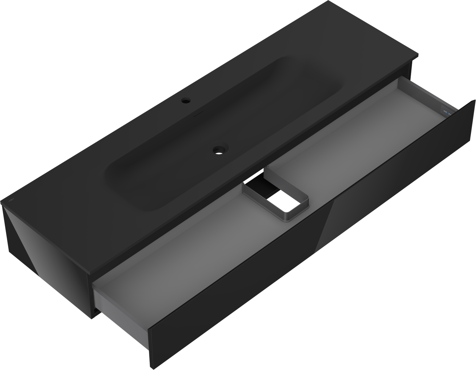 Mexen Orio koupelnová skříňka 160 cm s umyvadlem Vela, 1 zásuvka, černý lesk/černý mat - 91A10-16023-1-BF70-W23M71