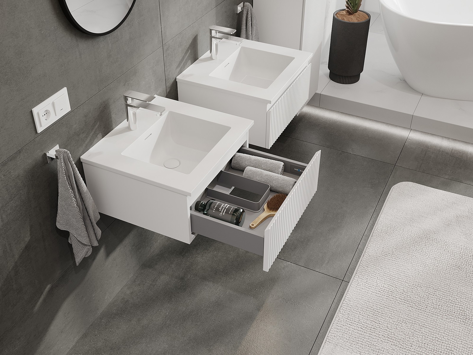 Mexen Rivel koupelnová skříňka 50 cm s umyvadlem Otis, 1 zásuvka, drážkovaná, bílá matná - 91A20-05023-1-BF01-W18M01