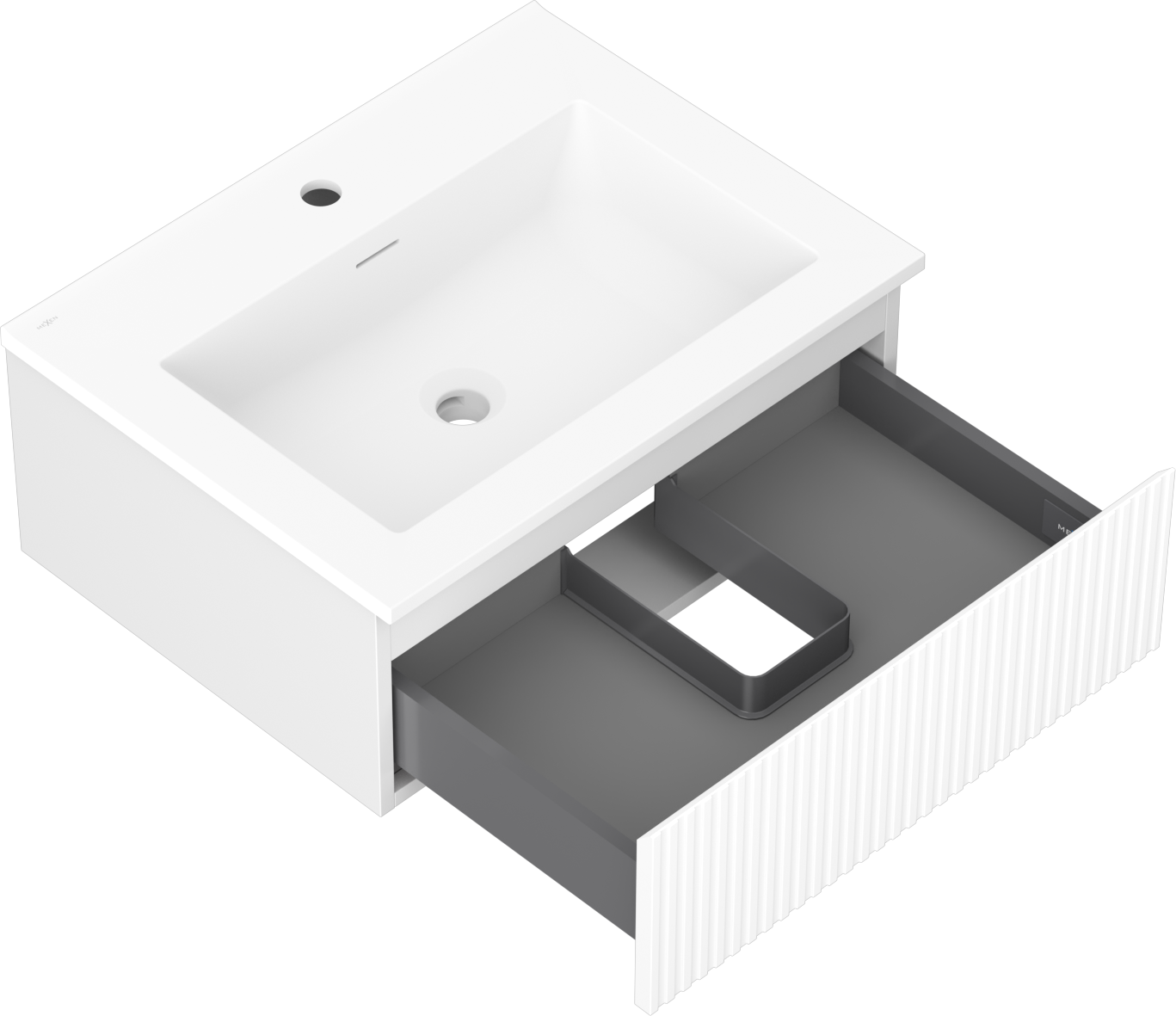Mexen Rivel koupelnová skříňka 60 cm s umyvadlem Otis, 1 zásuvka, drážkovaná, bílá mat - 91A20-06023-1-BF01-W18M01