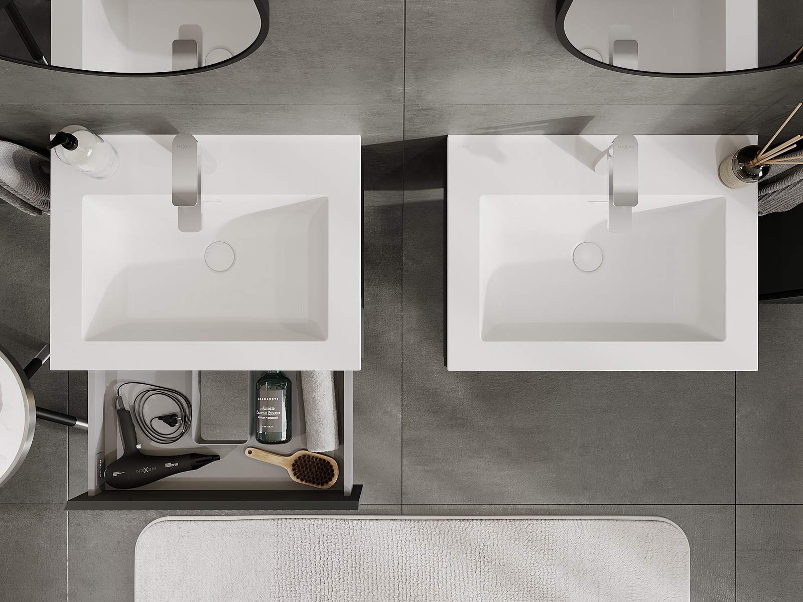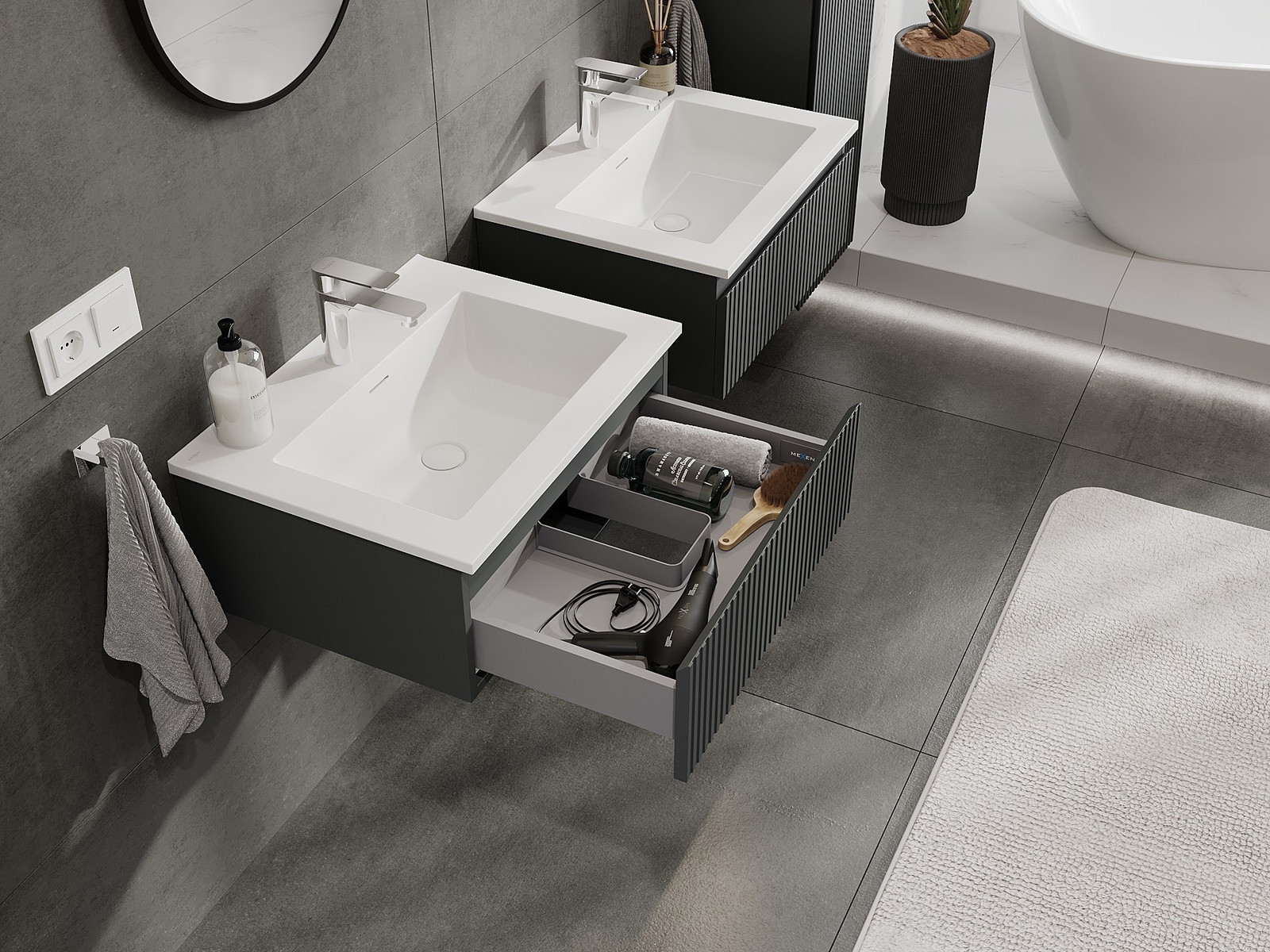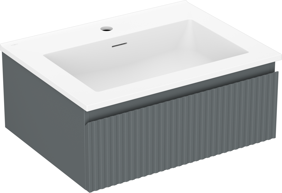 Mexen Rivel koupelnová skříňka 60 cm s umyvadlem Otis, 1 zásuvka, drážkovaná, grafit mat/bílá mat - 91A20-06023-1-BF66-W18M01