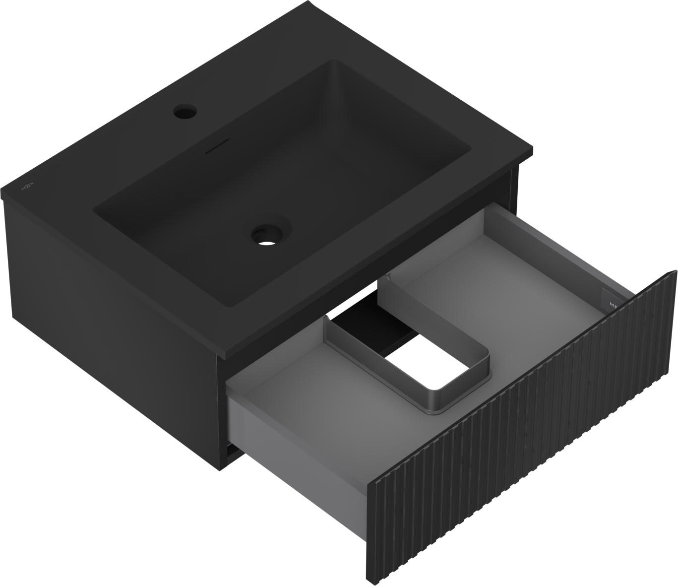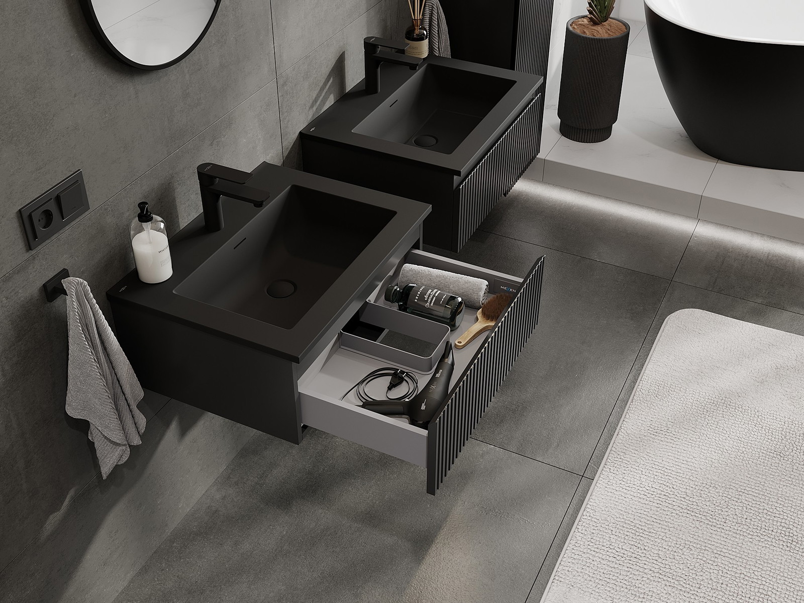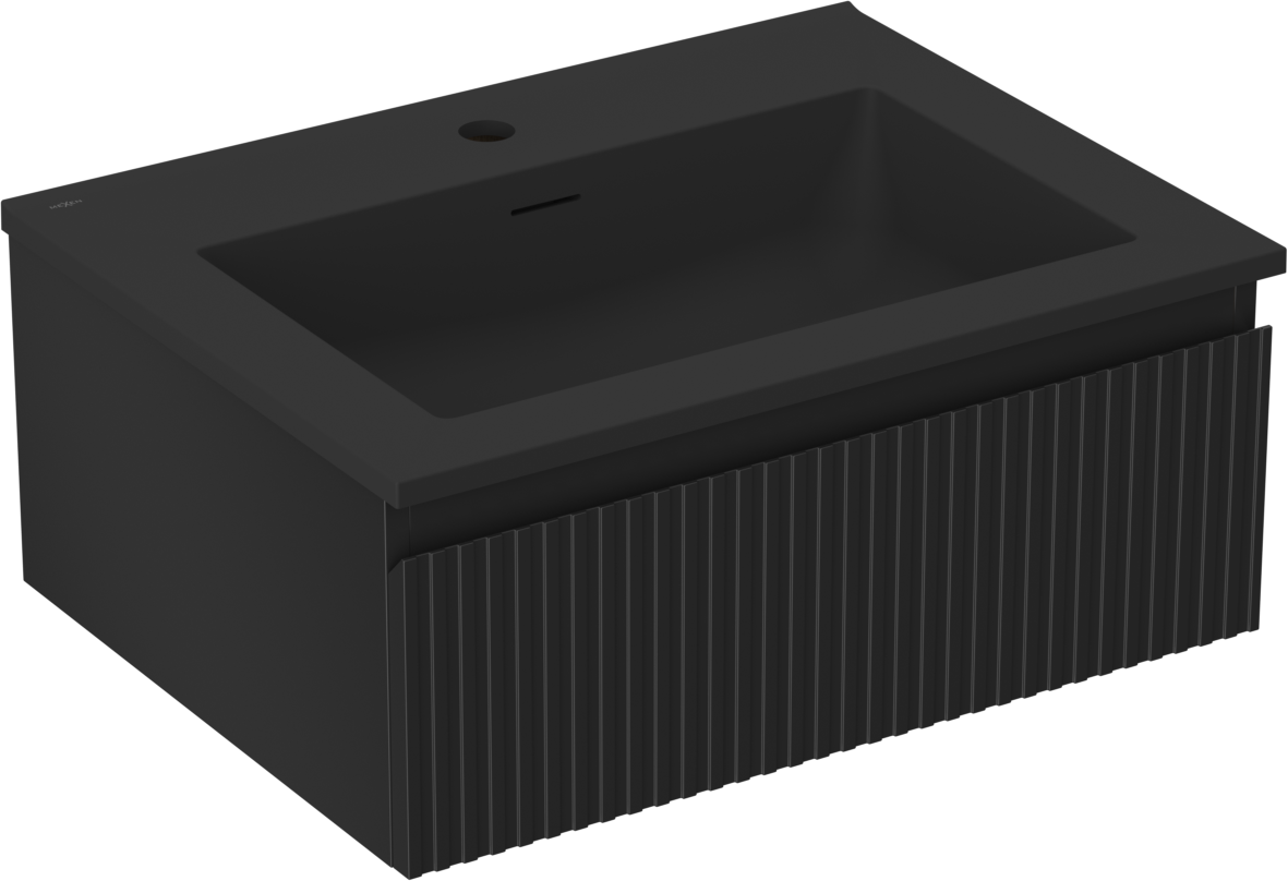 Mexen Rivel koupelnová skříňka 60 cm s umyvadlem Otis, 1 zásuvka, drážkovaná, černá mat - 91A20-06023-1-BF71-W18M71