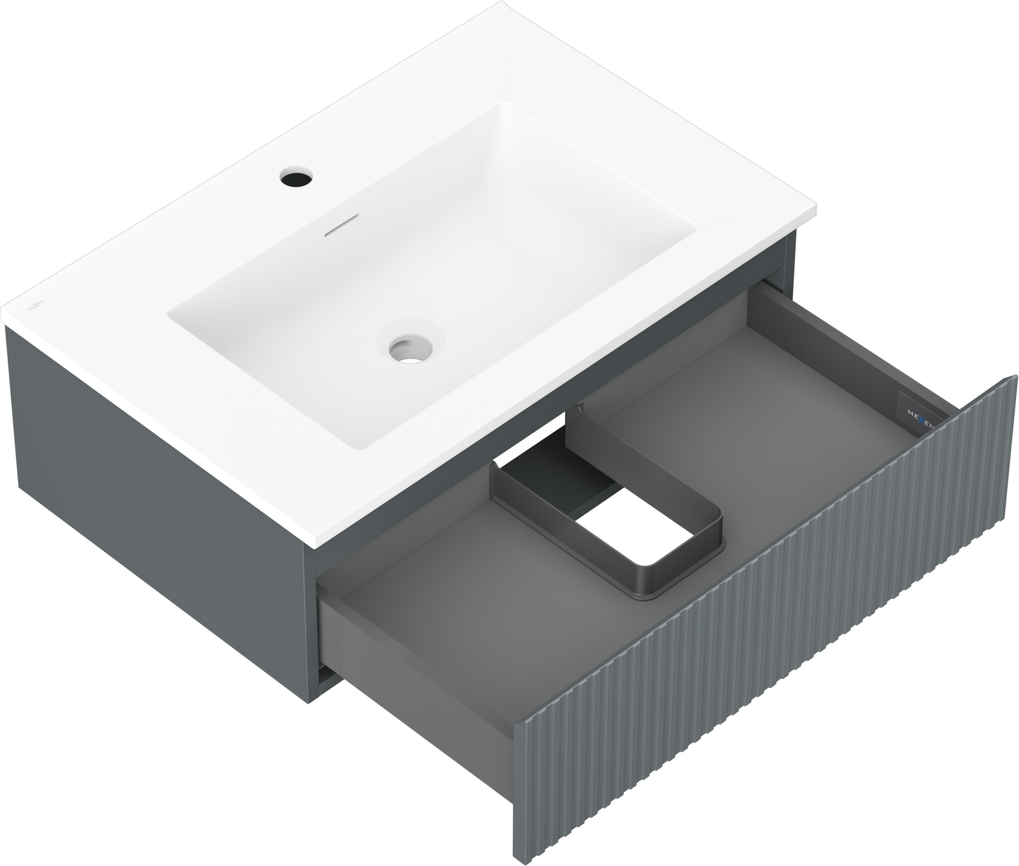 Mexen Rivel koupelnová skříňka 70 cm s umyvadlem Otis, 1 zásuvka, rýhovaná, grafit mat/bílá mat - 91A20-07023-1-BF66-W18M01
