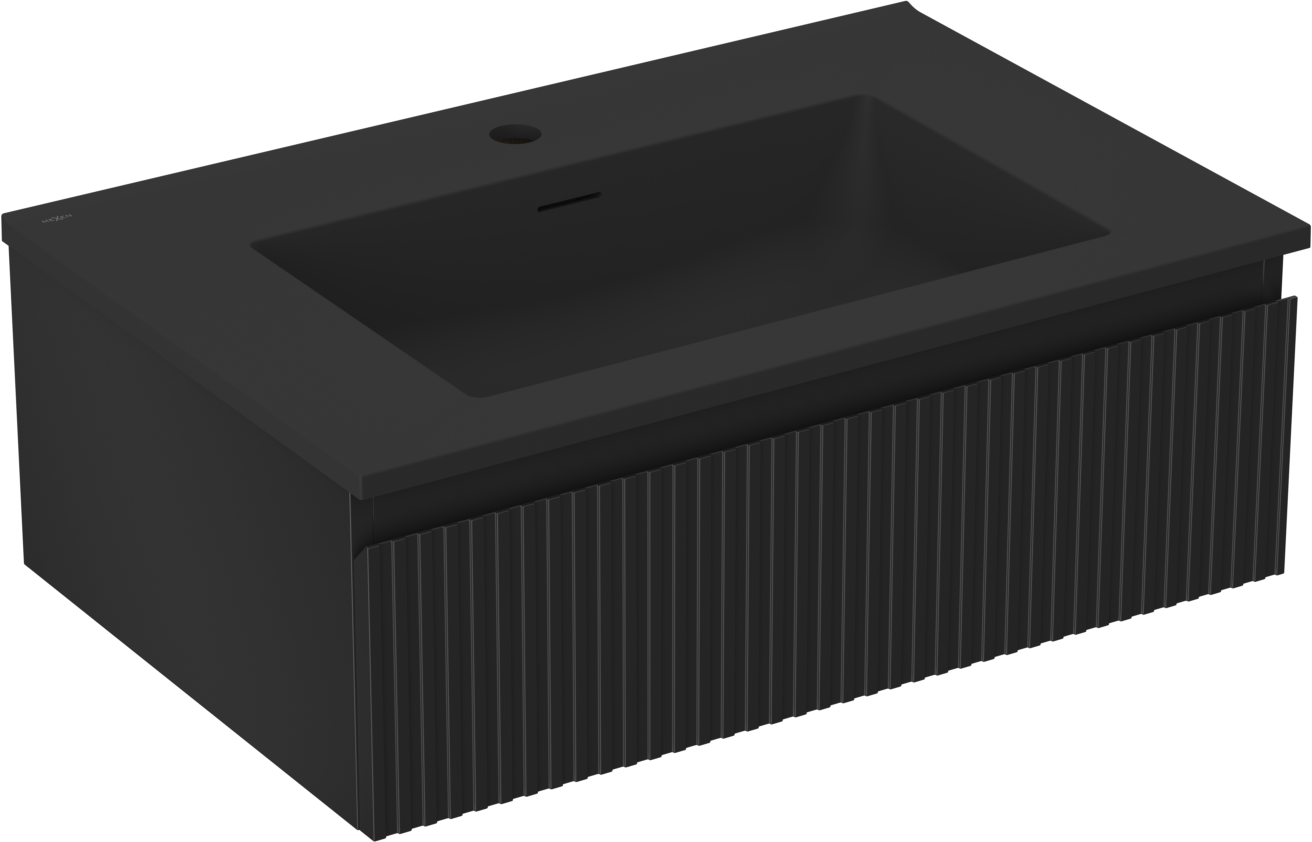 Mexen Rivel koupelnová skříňka 70 cm s umyvadlem Otis, 1 zásuvka, rýhovaná, černý mat - 91A20-07023-1-BF71-W18M71