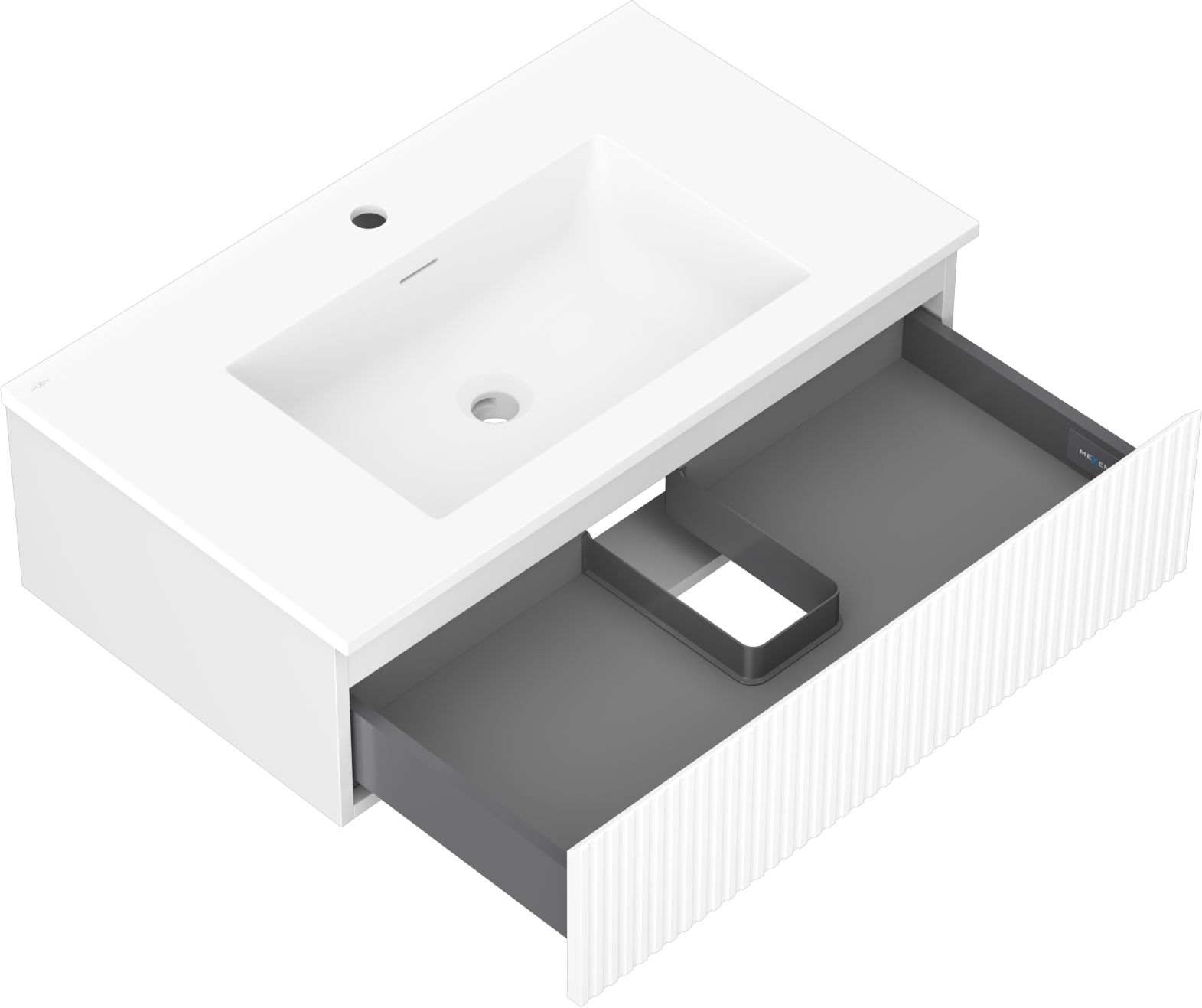Mexen Rivel koupelnová skříňka 80 cm s umyvadlem Otis, 1 zásuvka, drážkovaná, bílá mat - 91A20-08023-1-BF01-W18M01