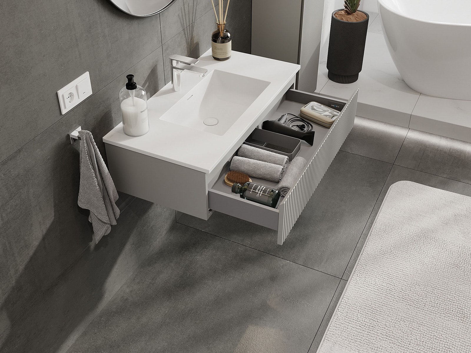Mexen Rivel koupelnová skříňka 90 cm s umyvadlem Otis, 1 zásuvka, drážkovaná, šedá mat/bílá mat - 91A20-09023-1-BF62-W18M01