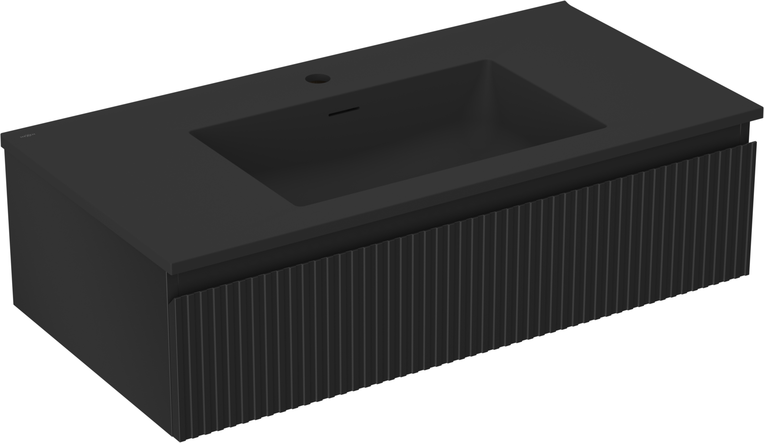 Mexen Rivel koupelnová skříňka 90 cm s umyvadlem Otis, 1 zásuvka, drážkovaný, černá matná - 91A20-09023-1-BF71-W18M71