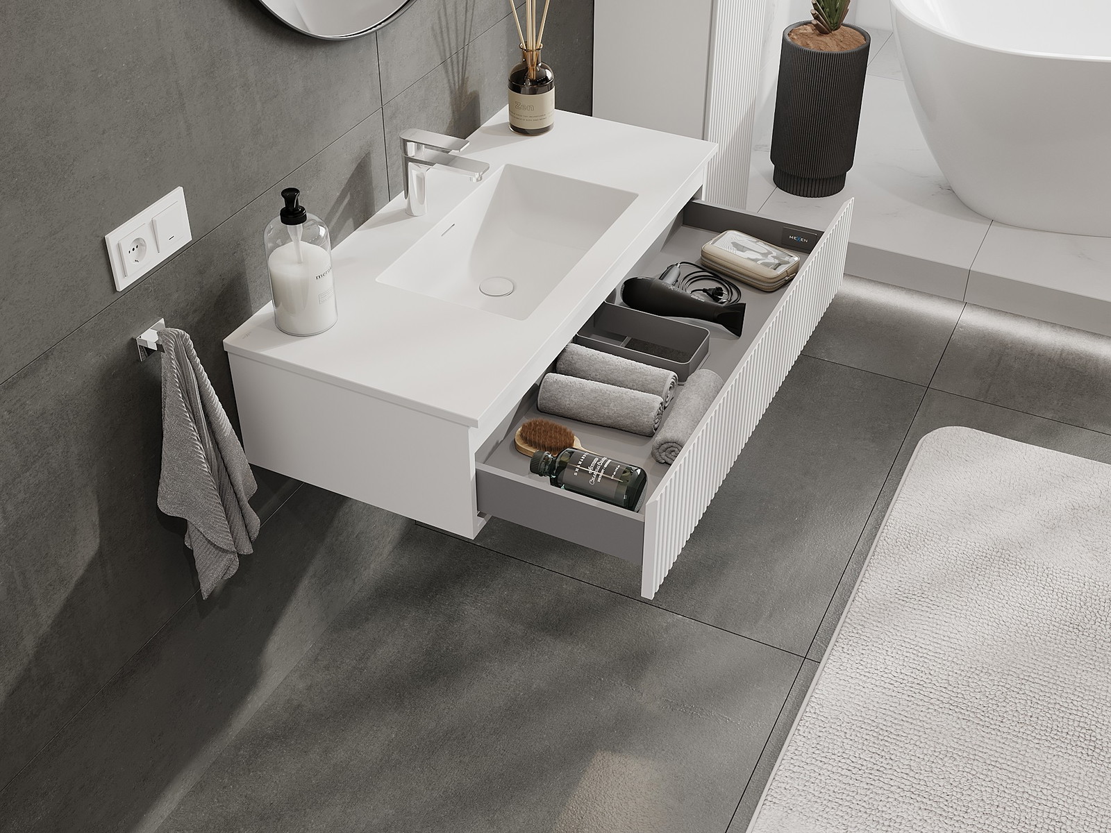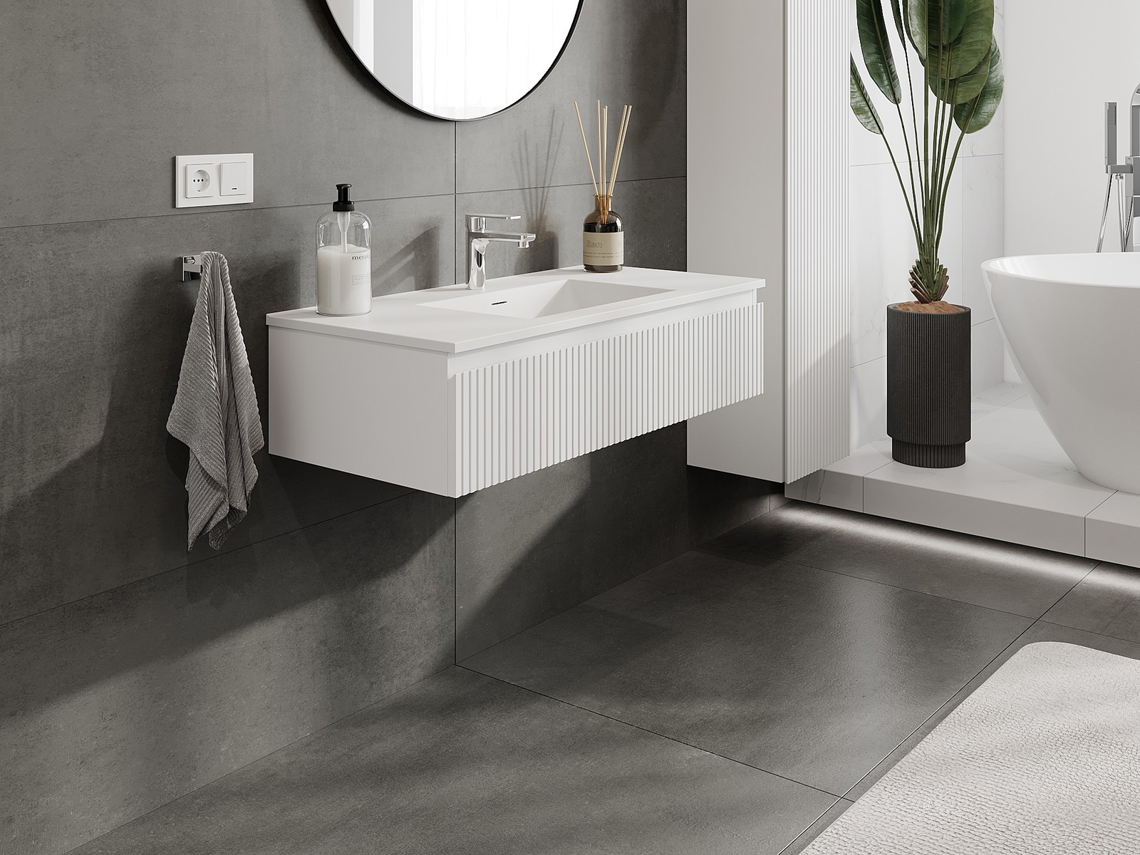 Mexen Rivel koupelnová skříňka 100 cm s umyvadlem Otis, 1 zásuvka, rýhovaná, bílá mat - 91A20-10023-1-BF01-W18M01