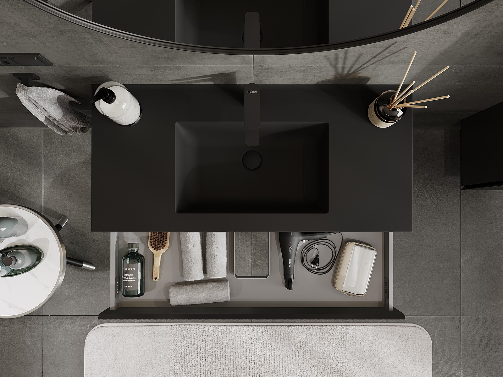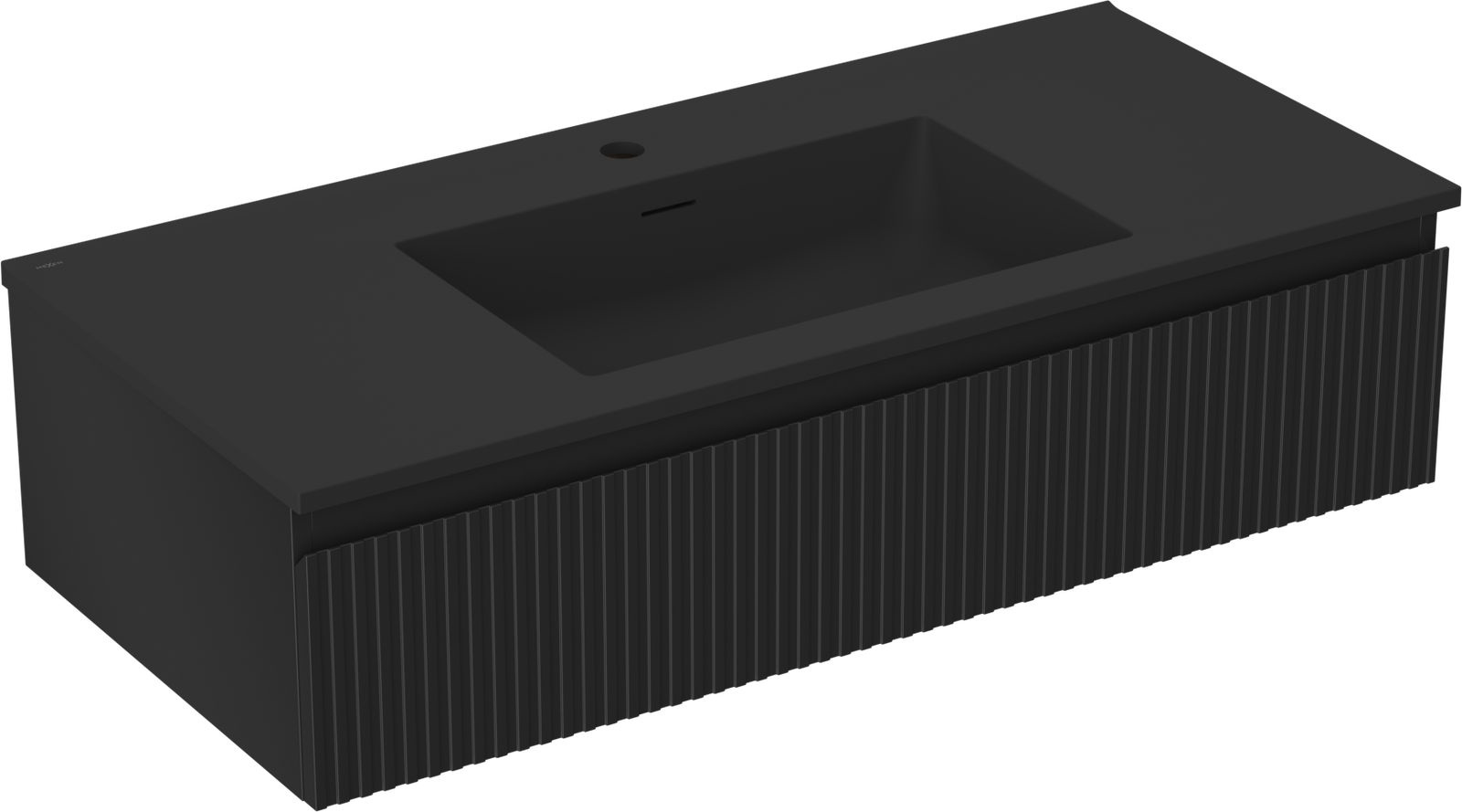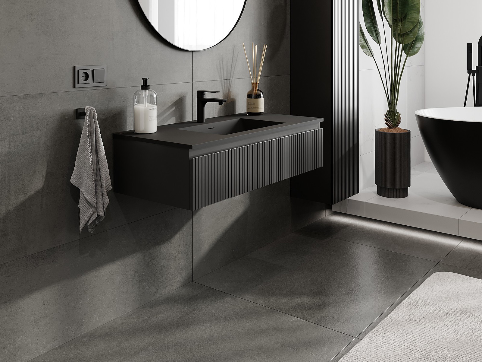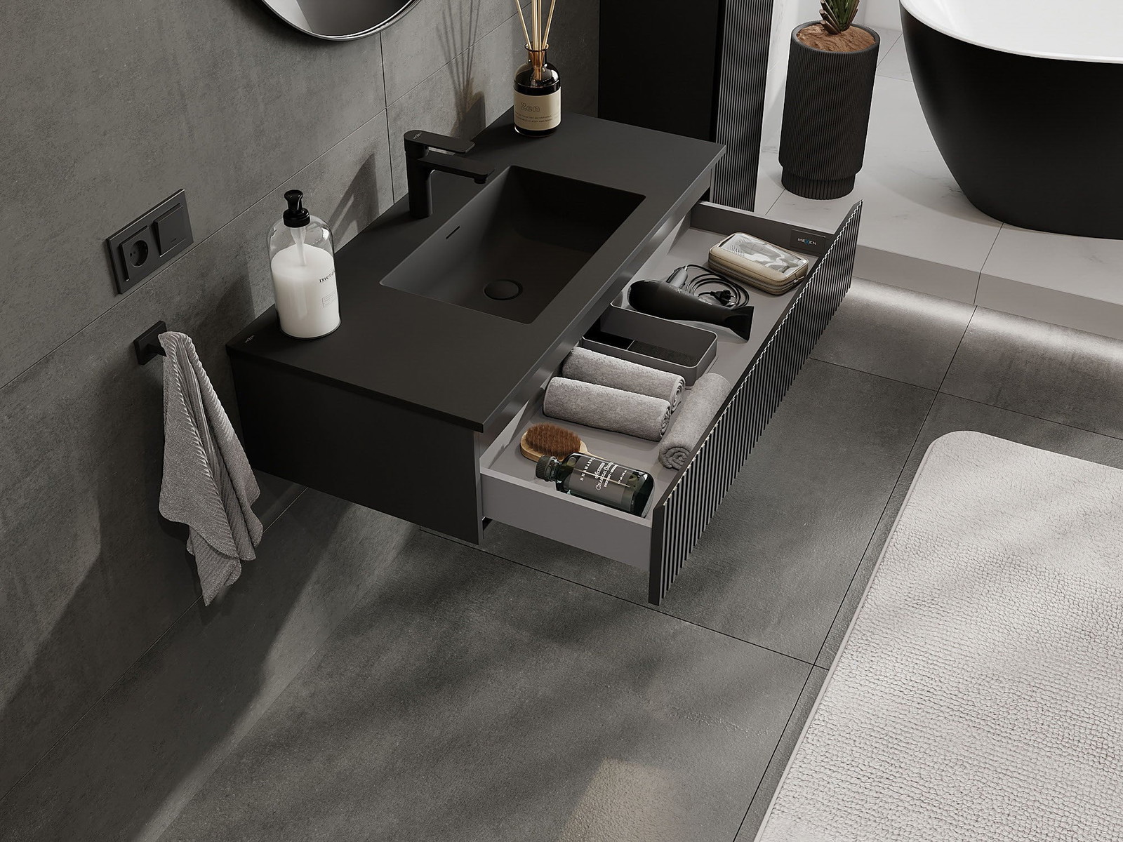 Mexen Rivel koupelnová skříňka 100 cm s umyvadlem Otis, 1 zásuvka, drážkovaná, černá mat - 91A20-10023-1-BF71-W18M71