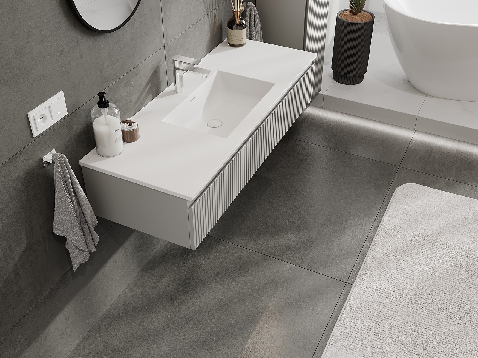 Mexen Rivel koupelnová skříňka 120 cm s umyvadlem Otis, 1 zásuvka, rýhovaná, šedá matná/bílá matná - 91A20-12023-1-BF62-W18M01