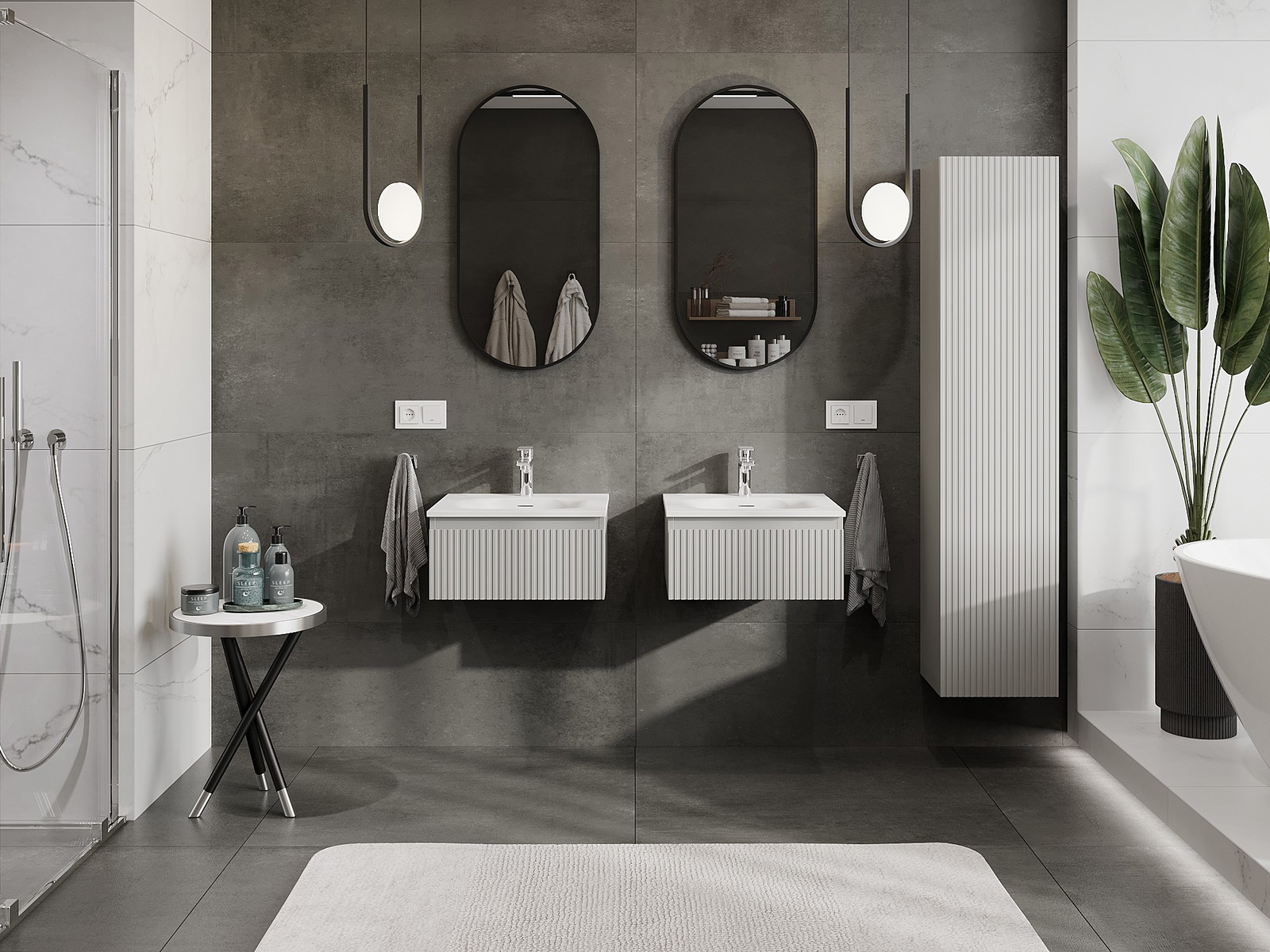 Korpus skříňky je dodáván zcela smontovaný, což znamená maximální pohodlí a úsporu času. Nemusíte ztrácet hodiny skládáním nábytku – stačí jej namontovat na vybrané místo v koupelně. Je to ideální řešení pro osoby, které si cení rychlé montáže a okamžitého efektu.