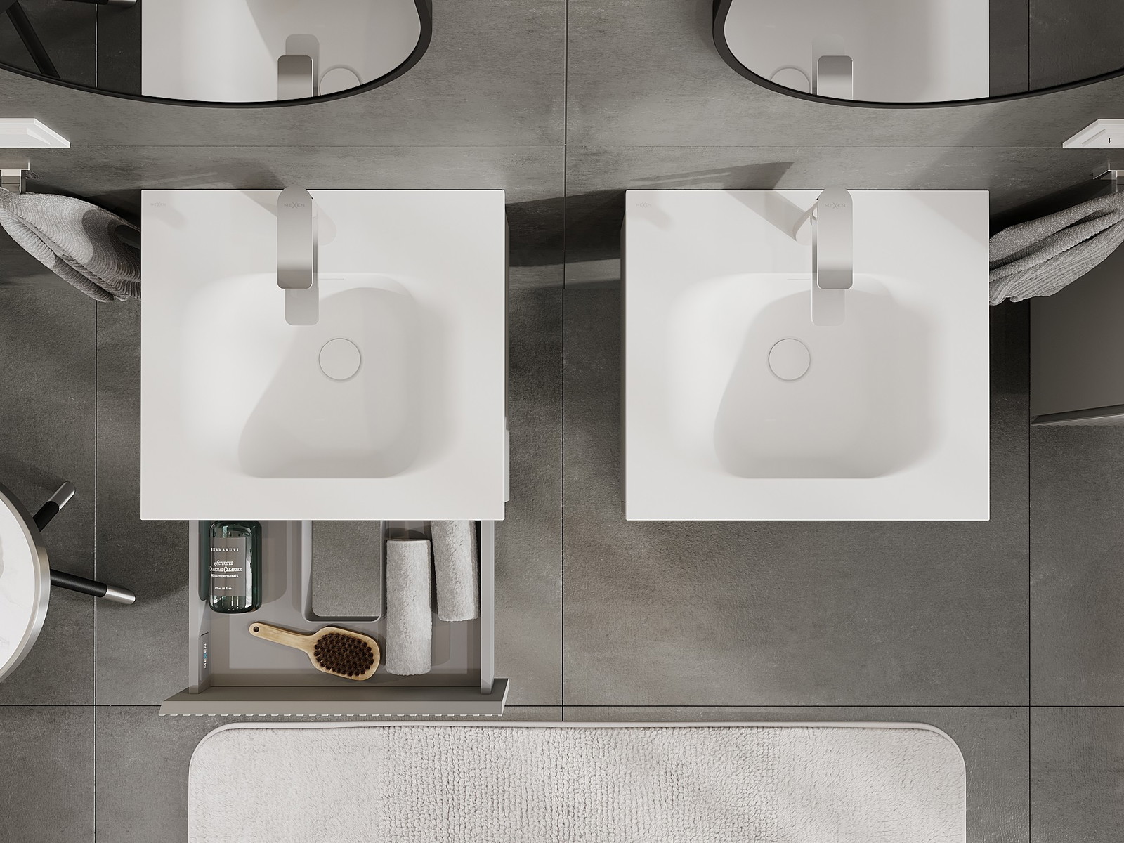 Výřez v zásuvce je navržen tak, aby pojmul sifon, který je nezbytný v instalacích umyvadlových. Díky tomu může být nábytek plně funkčně namontován, aniž by bylo nutné vzdát se prostoru v zásuvce ve prospěch instalace.