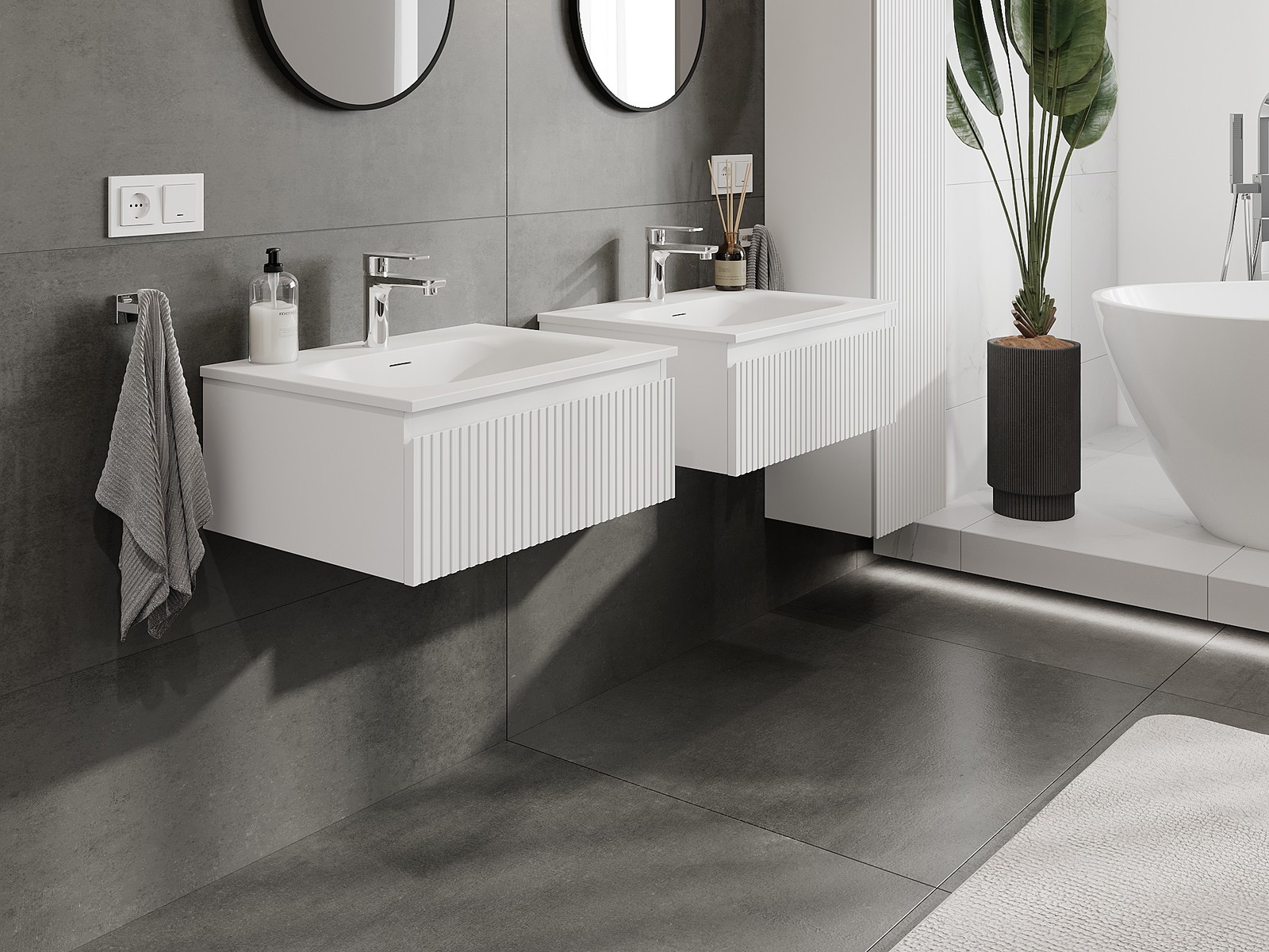 Korpus skříňky je dodáván zcela smontovaný, což znamená maximální pohodlí a úsporu času. Nemusíte ztrácet hodiny skládáním nábytku – stačí jej namontovat na vybrané místo v koupelně. Je to ideální řešení pro osoby, které si cení rychlé montáže a okamžitého efektu.