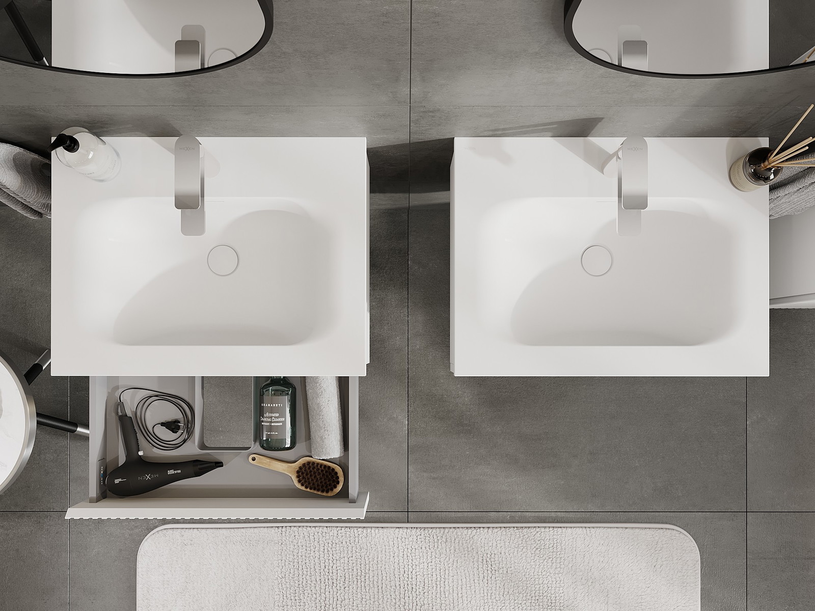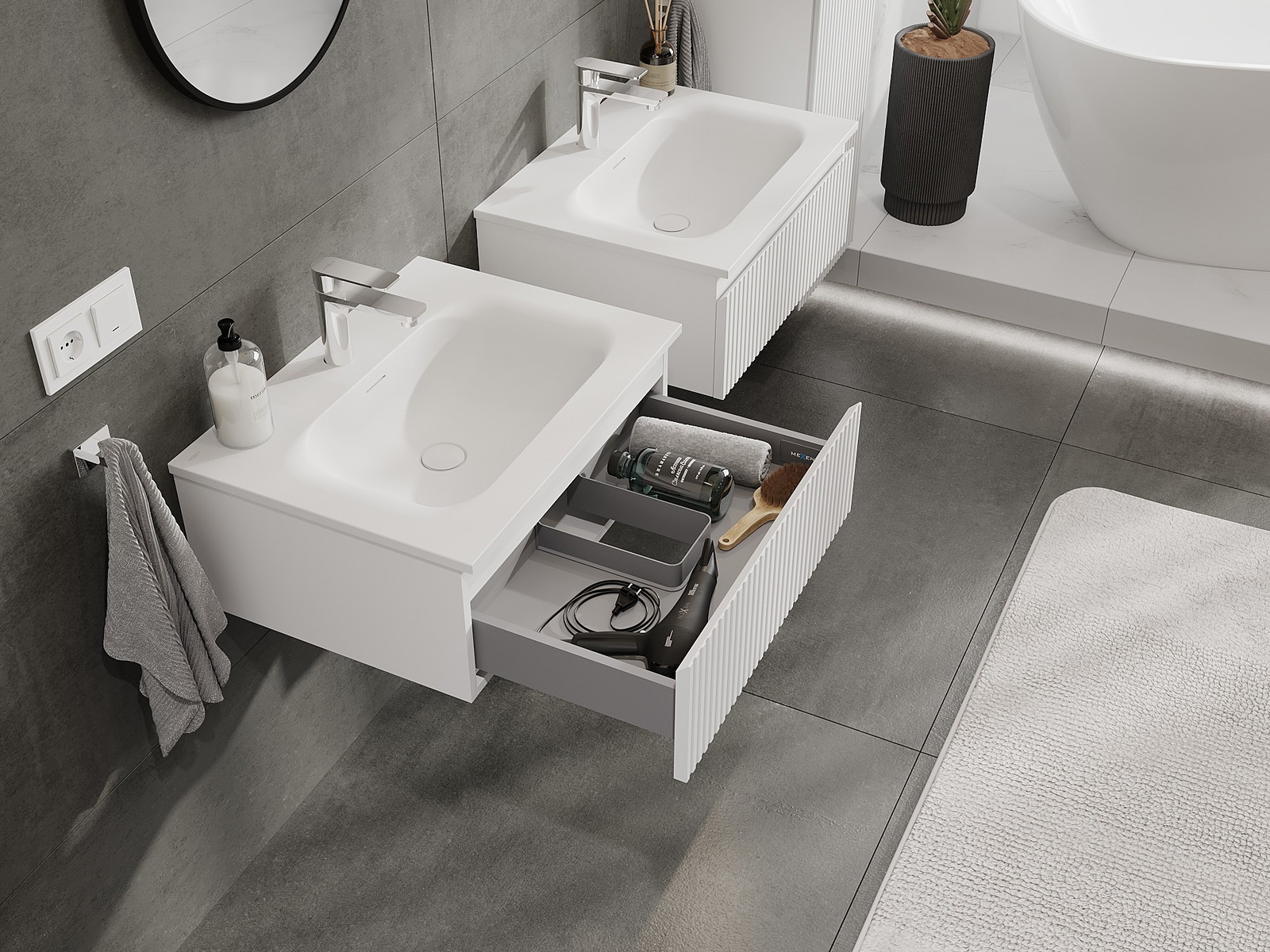 Výřez v zásuvce je navržen tak, aby pojmul sifon, který je nezbytný v instalacích umyvadlových. Díky tomu může být nábytek plně funkčně namontován, aniž by bylo nutné vzdát se prostoru v zásuvce ve prospěch instalace.