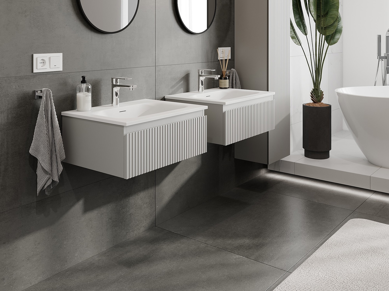 Naše modulární koupelnový nábytek lze kombinovat v různých barevných konfiguracích, což umožňuje plnou personalizaci. Můžete si vybrat jak vzhled, tak funkce jednotlivých prvků, což umožňuje přizpůsobit nábytek vašim stylovým a uživatelským preferencím.