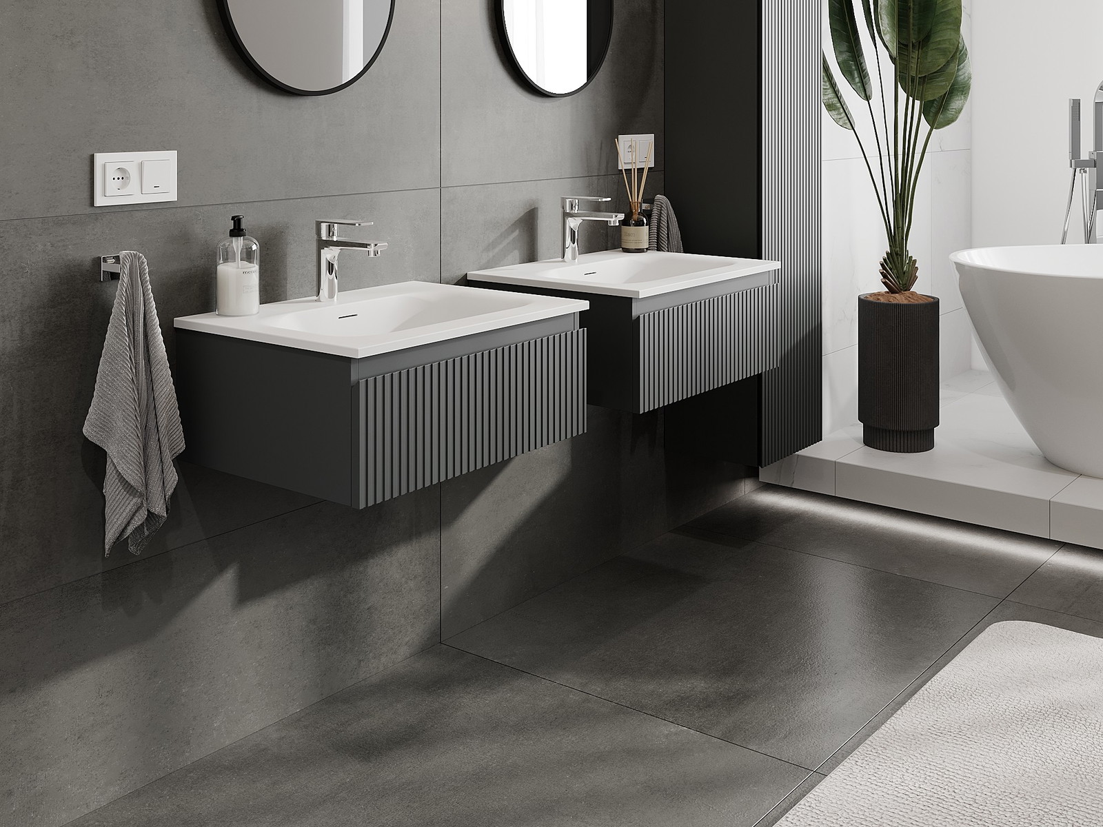 Naše modulární koupelnový nábytek lze kombinovat v různých barevných konfiguracích, což umožňuje plnou personalizaci. Můžete si vybrat jak vzhled, tak funkce jednotlivých prvků, což umožňuje přizpůsobit nábytek vašim stylovým a uživatelským preferencím.