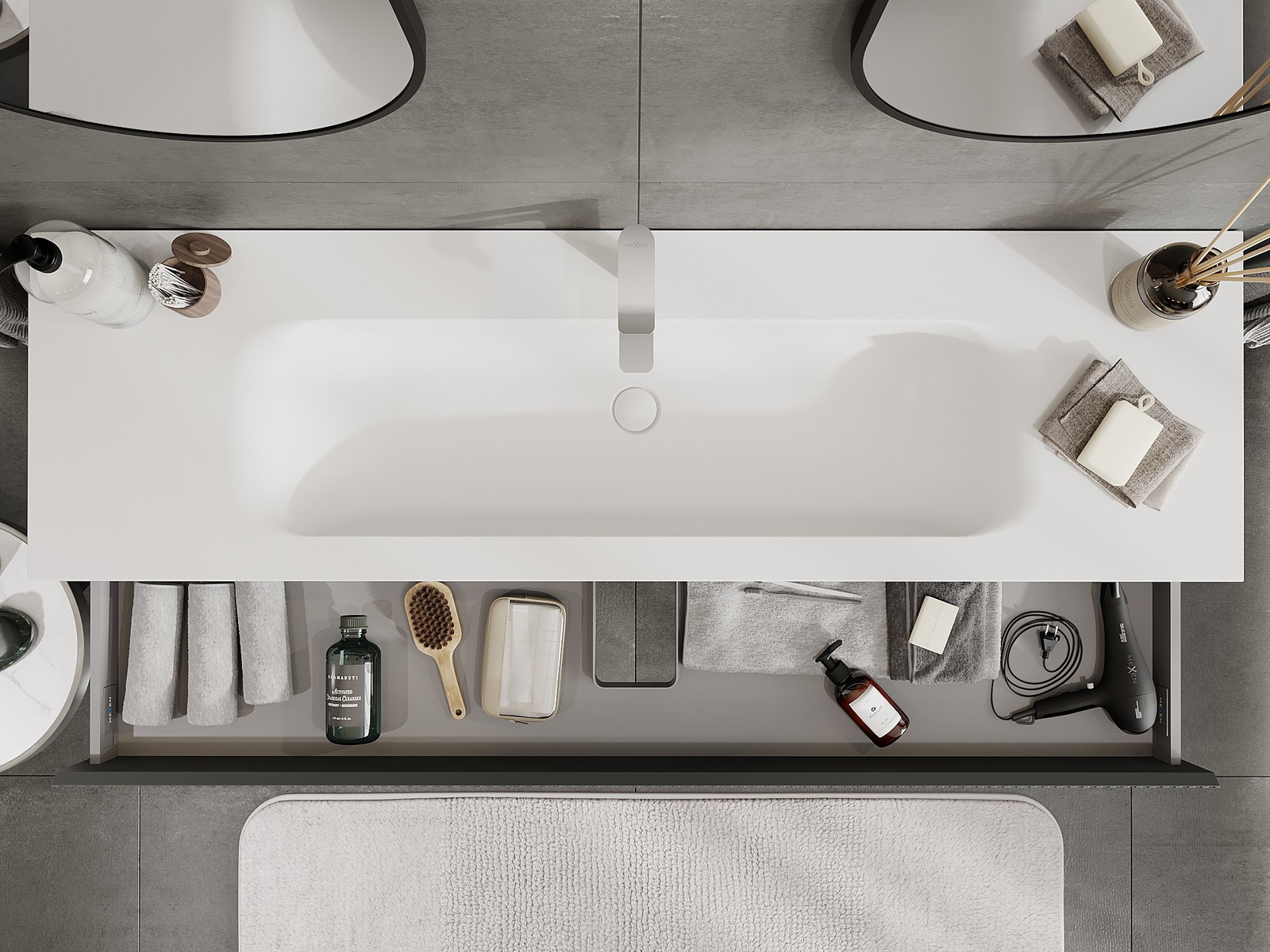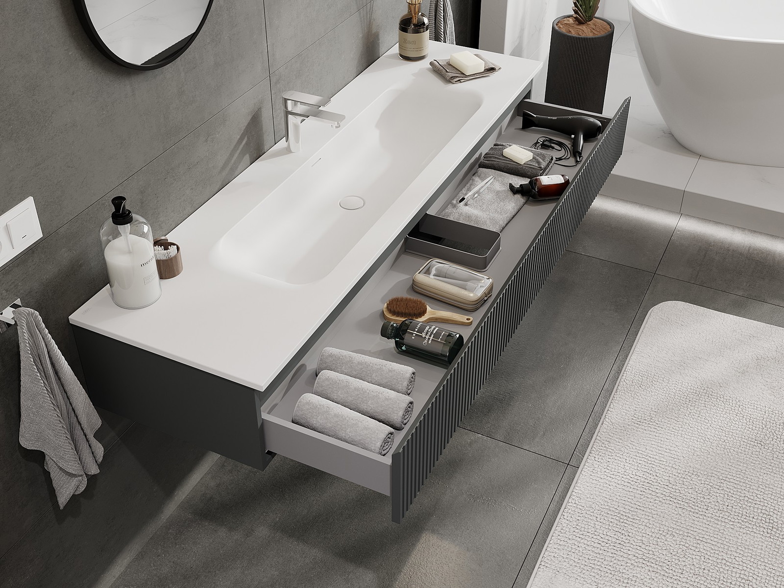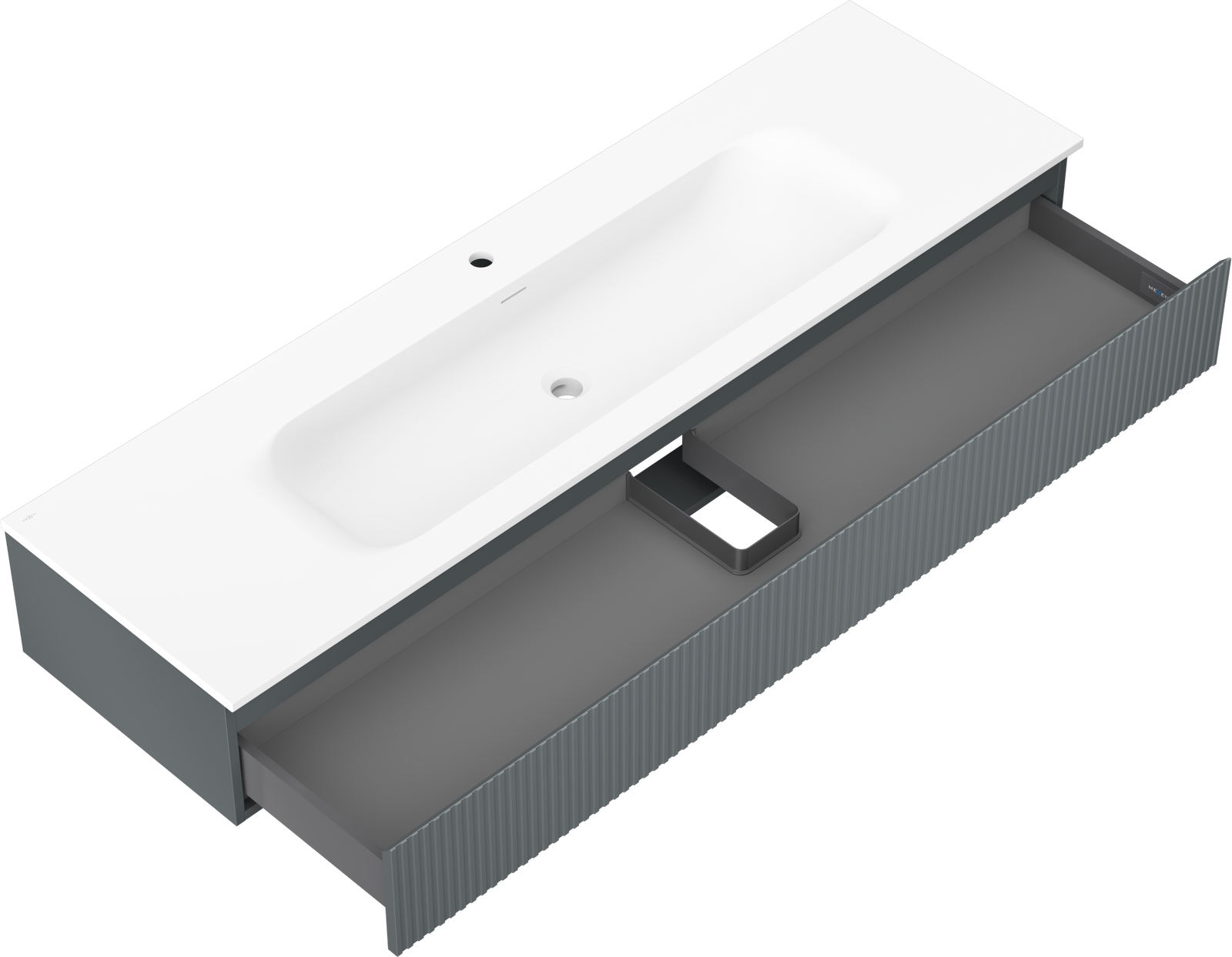 Výřez v zásuvce je navržen tak, aby pojmul sifon, který je nezbytný v instalacích umyvadlových. Díky tomu může být nábytek plně funkčně namontován, aniž by bylo nutné vzdát se prostoru v zásuvce ve prospěch instalace.