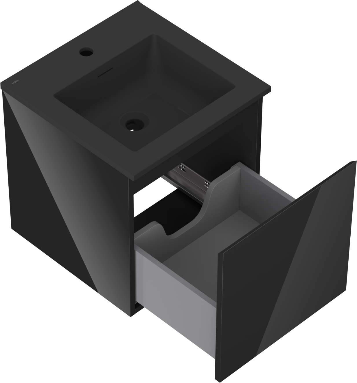 Mexen Orio koupelnová skříňka 45 cm s umyvadlem Otis, 1 zásuvka, černý lesk/černý mat - 91A10-04547-1-BF70-W18M71