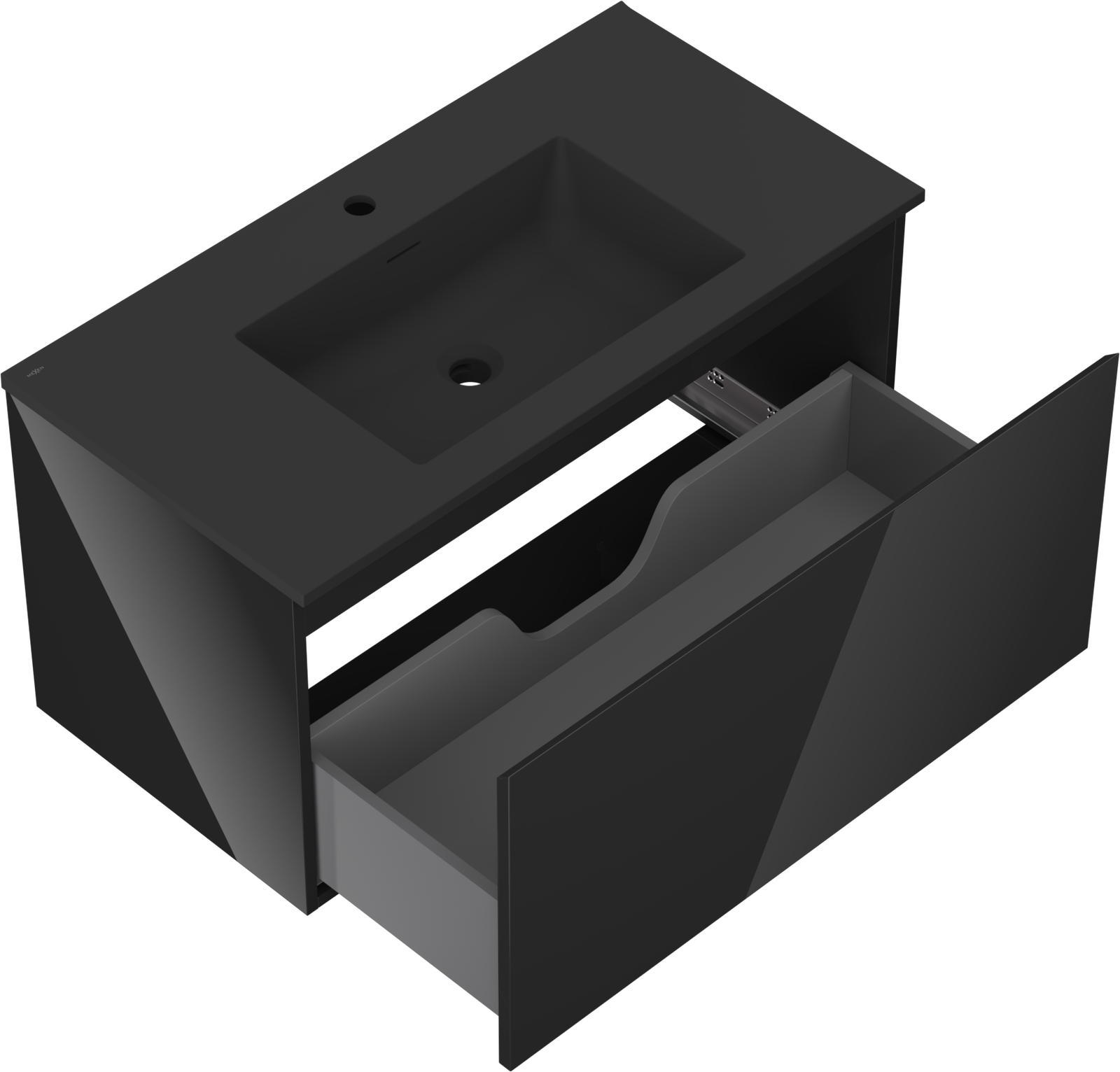 Mexen Orio koupelnová skříňka 90 cm s umyvadlem Otis, 1 zásuvka, černý lesk/černý mat - 91A10-09047-1-BF70-W18M71
