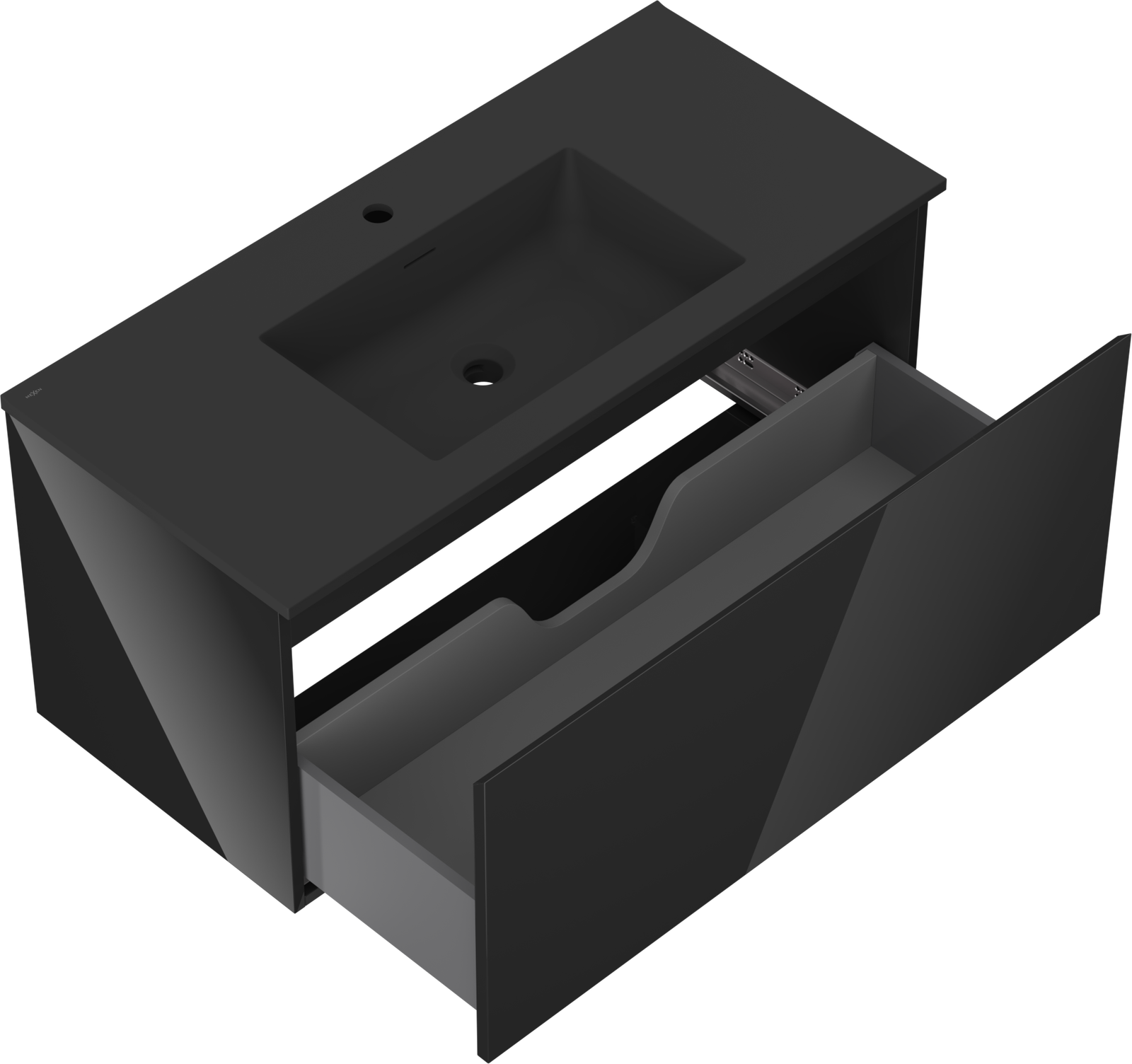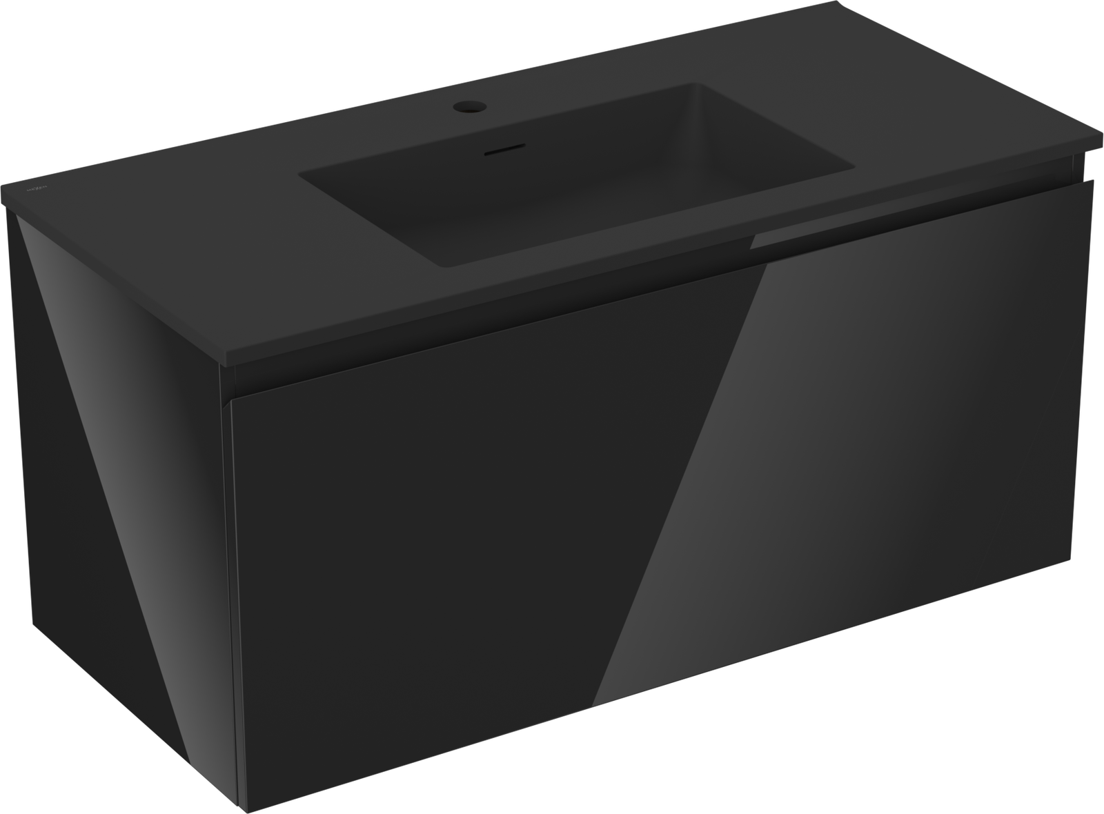 Mexen Orio koupelnová skříňka 100 cm s umyvadlem Otis, 1 zásuvka, černý lesk/černý mat - 91A10-10047-1-BF70-W18M71