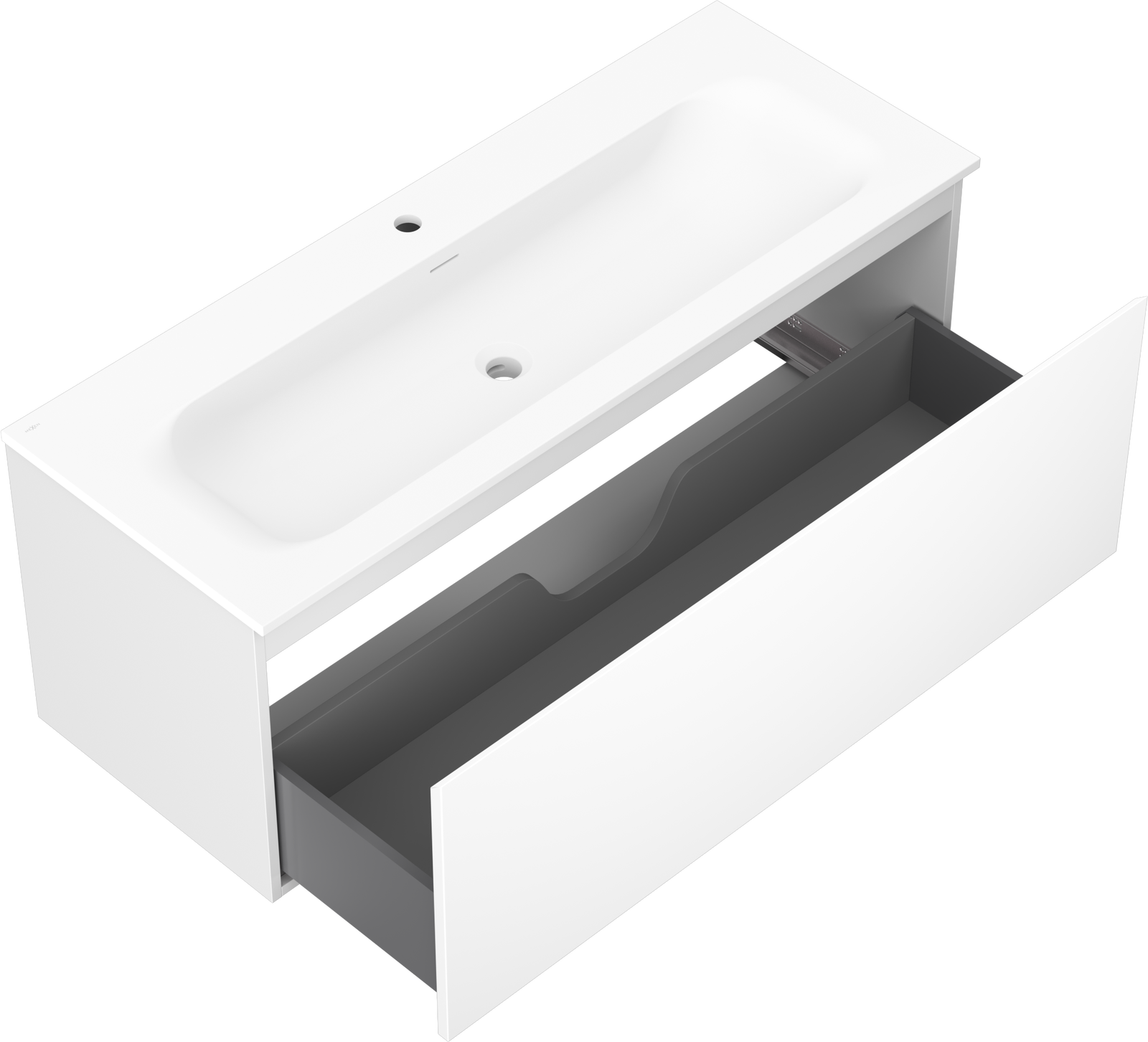Výřez v zásuvce je navržen tak, aby pojmul sifon, který je nezbytný v instalacích umyvadlových. Díky tomu může být nábytek plně funkčně namontován, aniž by bylo nutné vzdát se prostoru v zásuvce ve prospěch instalace.