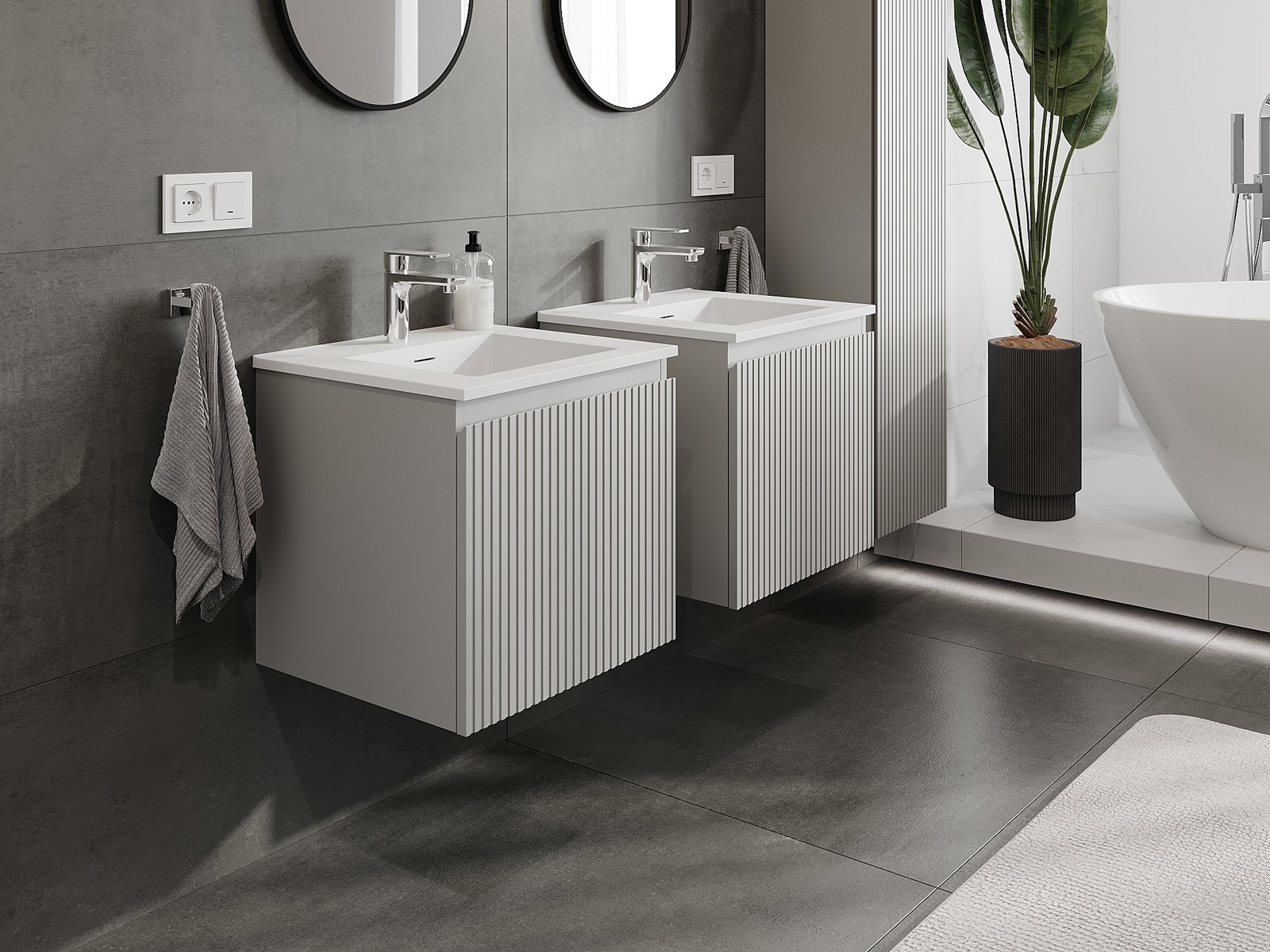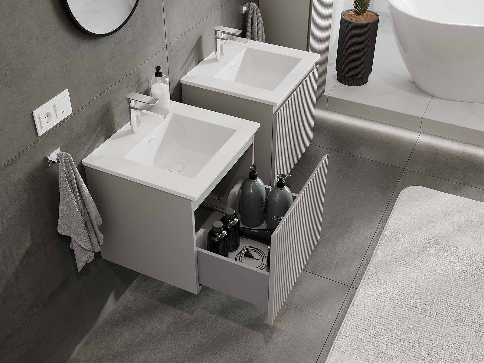 Naše modulární koupelnový nábytek lze kombinovat v různých barevných konfiguracích, což umožňuje plnou personalizaci. Můžete si vybrat jak vzhled, tak funkce jednotlivých prvků, což umožňuje přizpůsobit nábytek vašim stylovým a uživatelským preferencím.