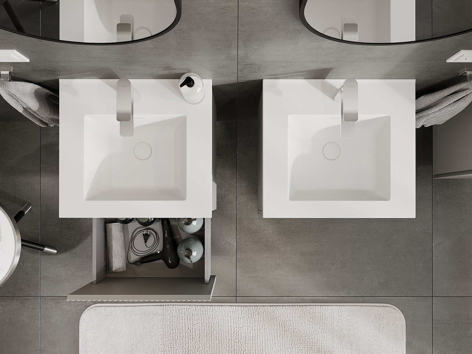 Výřez v zásuvce je navržen tak, aby pojmul sifon, který je nezbytný v instalacích umyvadlových. Díky tomu může být nábytek plně funkčně namontován, aniž by bylo nutné vzdát se prostoru v zásuvce ve prospěch instalace.