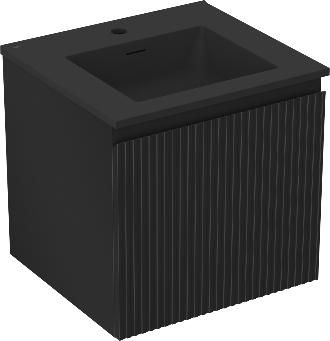 Mexen Rivel koupelnová skříňka 50 cm s umyvadlem Otis, 1 zásuvka, drážkovaná, černá mat - 91A20-05047-1-BF71-W18M71