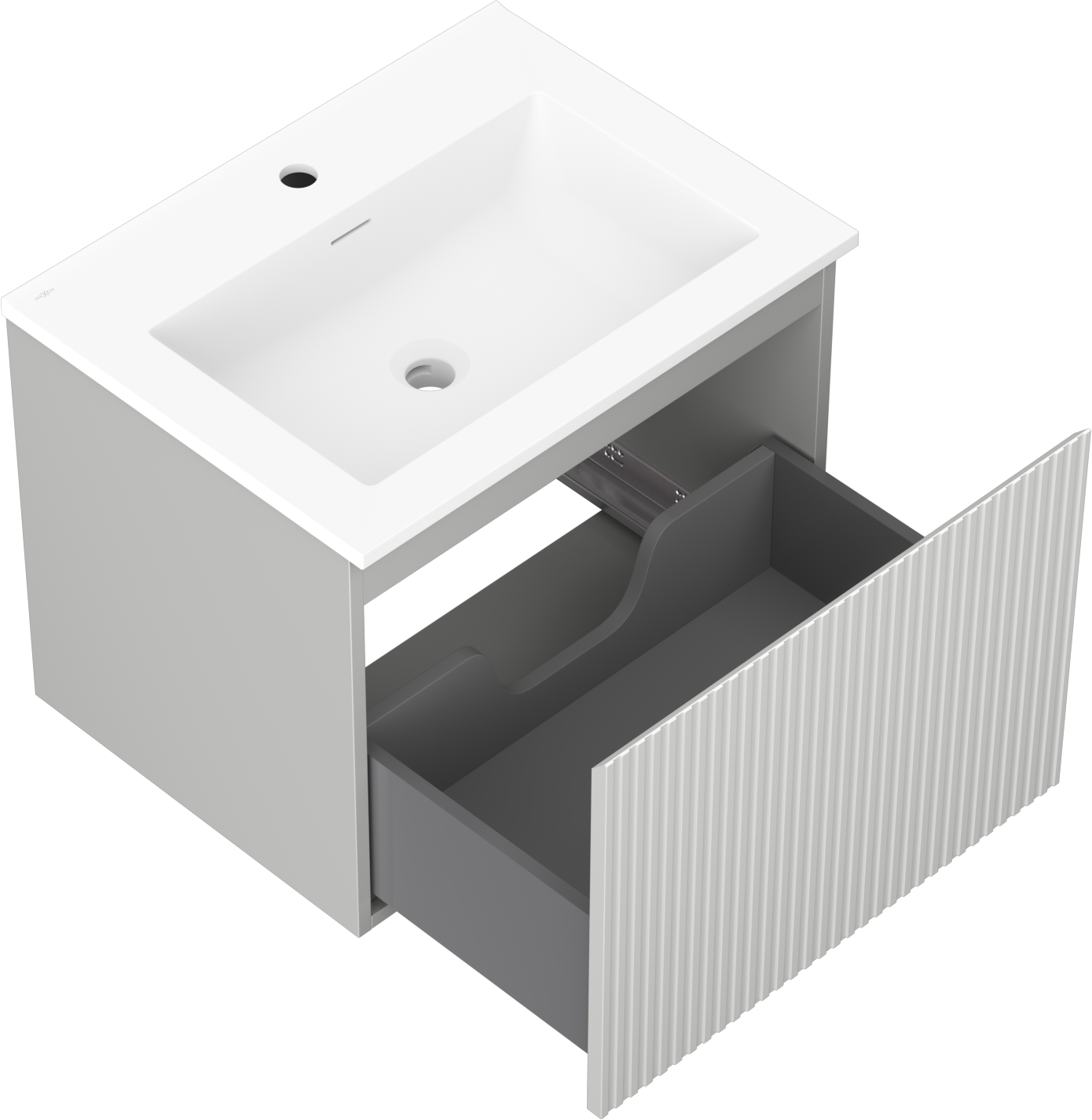 Mexen Rivel koupelnová skříňka 60 cm s umyvadlem Otis, 1 zásuvka, drážkovaná, šedá mat/bílá mat - 91A20-06047-1-BF62-W18M01