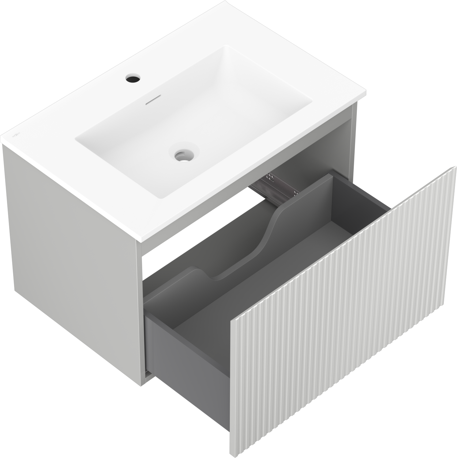 Mexen Rivel koupelnová skříňka 70 cm s umyvadlem Otis, 1 zásuvka, drážkovaná, šedá mat/bílá mat - 91A20-07047-1-BF62-W18M01