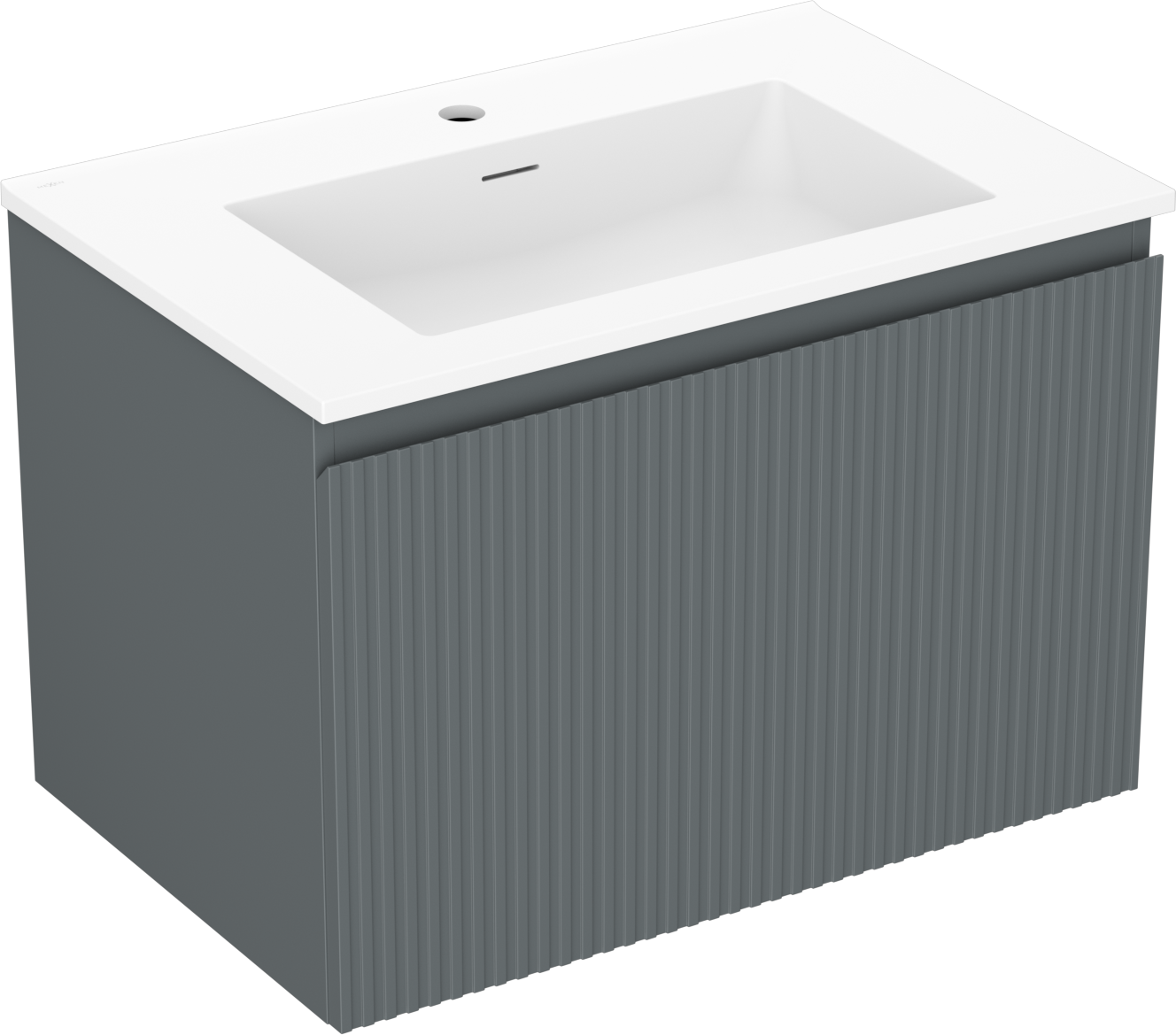 Mexen Rivel koupelnová skříňka 70 cm s umyvadlem Otis, 1 zásuvka, drážkovaná, grafit mat/bílá mat - 91A20-07047-1-BF66-W18M01