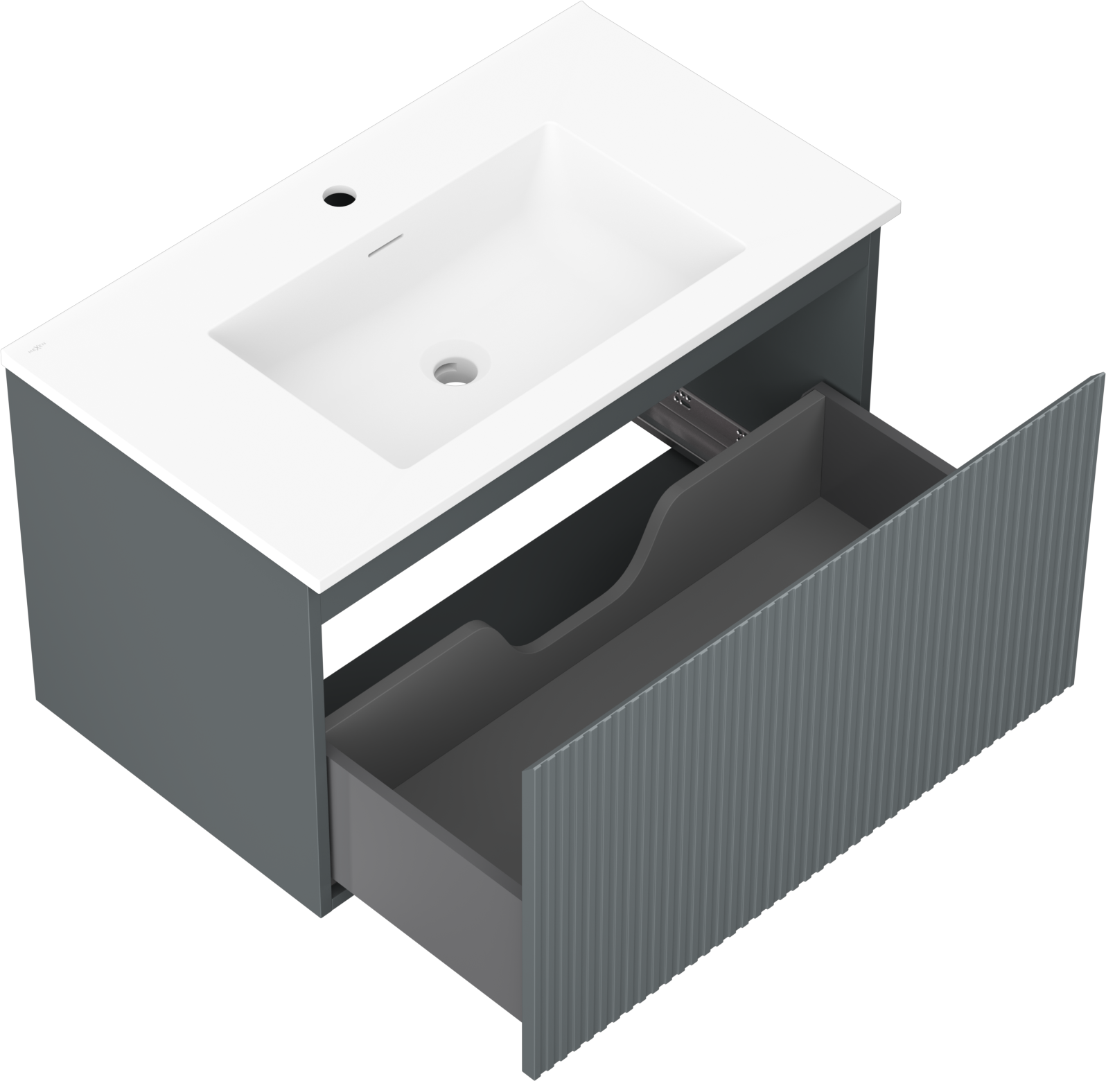 Mexen Rivel koupelnová skříňka 80 cm s umyvadlem Otis, 1 zásuvka, drážkovaná, grafit mat/bílá mat - 91A20-08047-1-BF66-W18M01