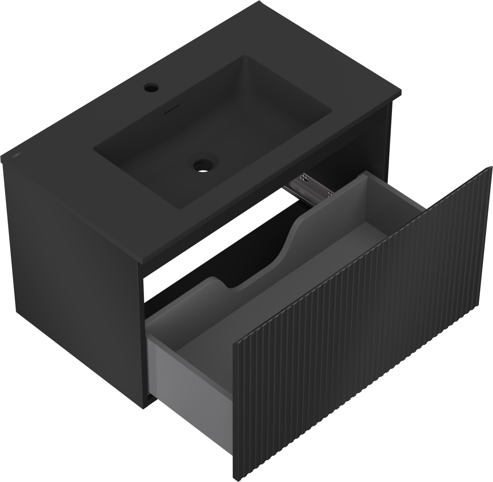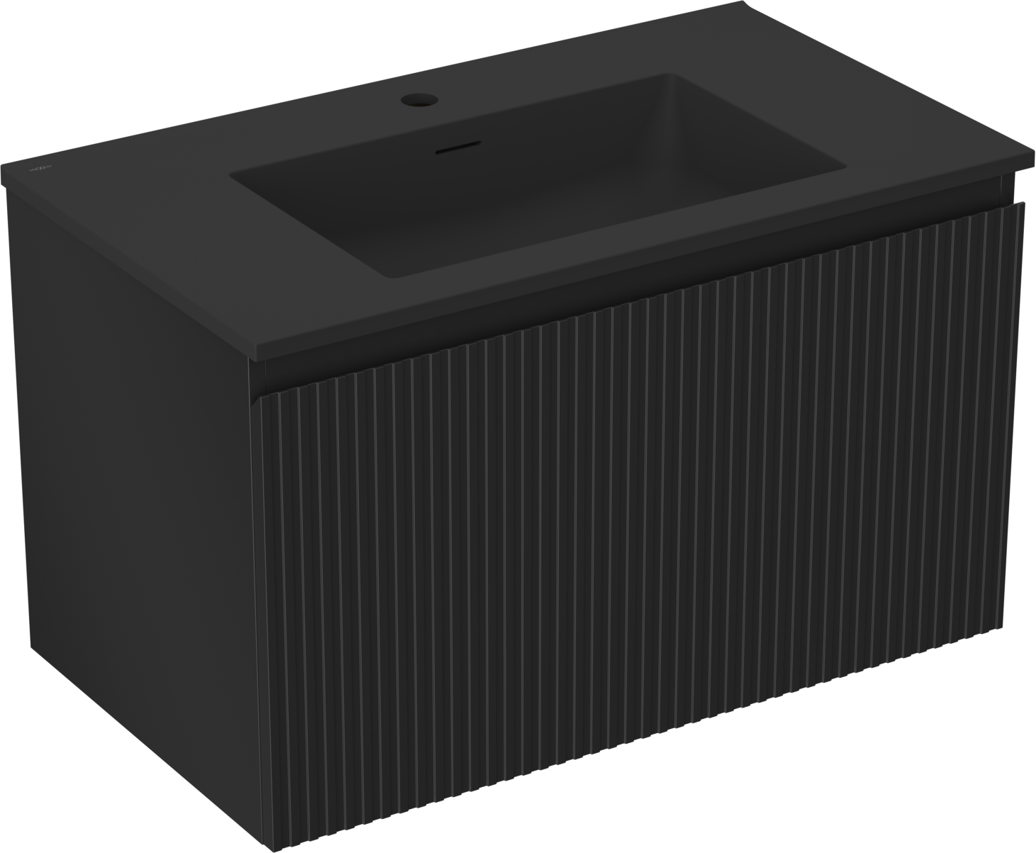 Mexen Rivel koupelnová skříňka 80 cm s umyvadlem Otis, 1 zásuvka, rýhovaná, černá mat - 91A20-08047-1-BF71-W18M71