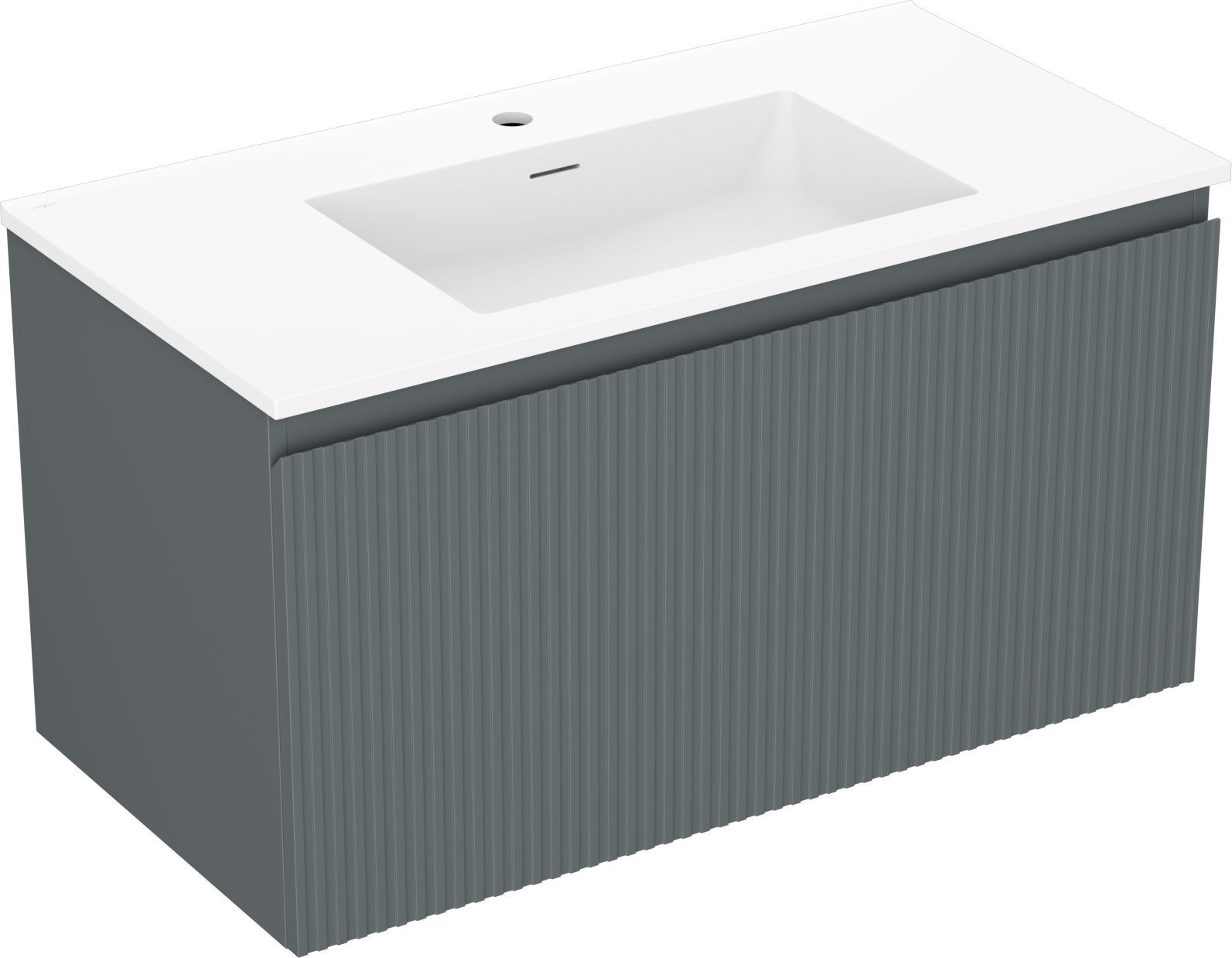 Mexen Rivel koupelnová skříňka 90 cm s umyvadlem Otis, 1 zásuvka, drážkovaná, grafit mat/bílá mat - 91A20-09047-1-BF66-W18M01