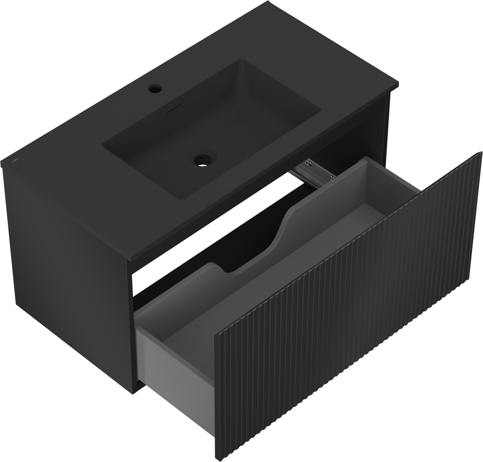 Mexen Rivel koupelnová skříňka 90 cm s umyvadlem Otis, 1 zásuvka, vroubkovaná, černý mat - 91A20-09047-1-BF71-W18M71