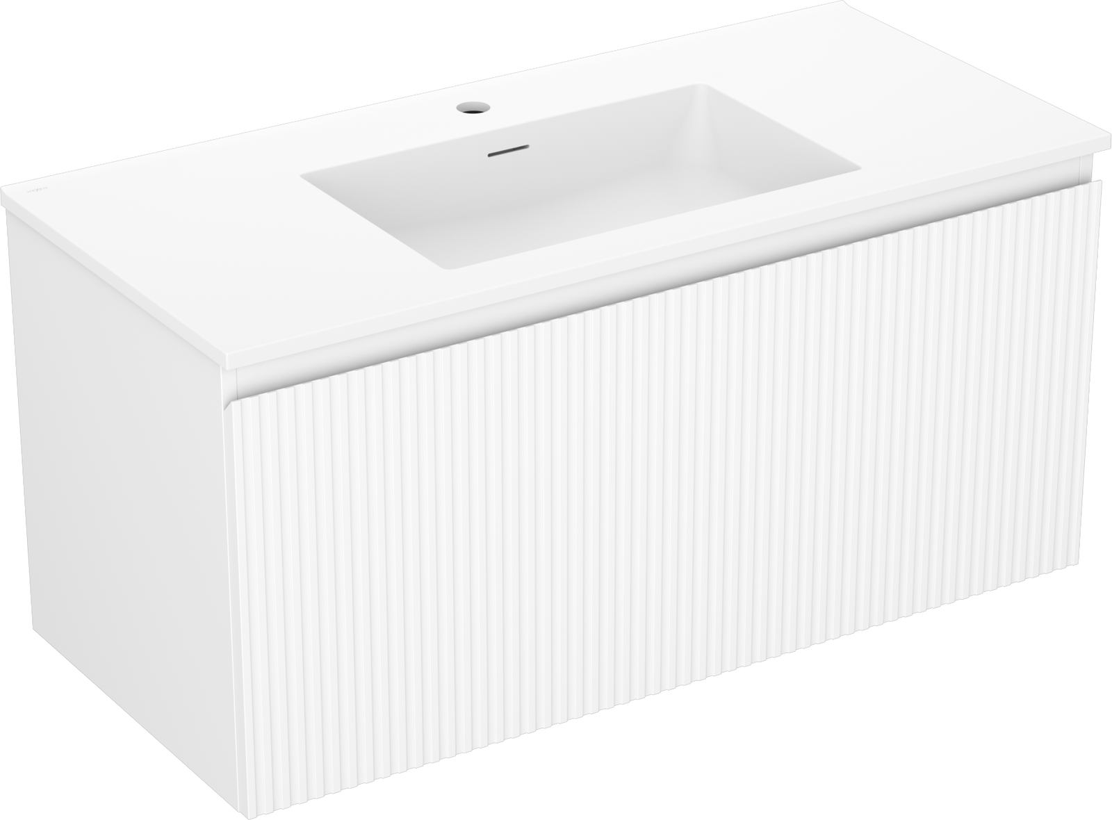 Mexen Rivel koupelnová skříňka 100 cm s umyvadlem Otis, 1 zásuvka, drážkovaná, bílá mat - 91A20-10047-1-BF01-W18M01
