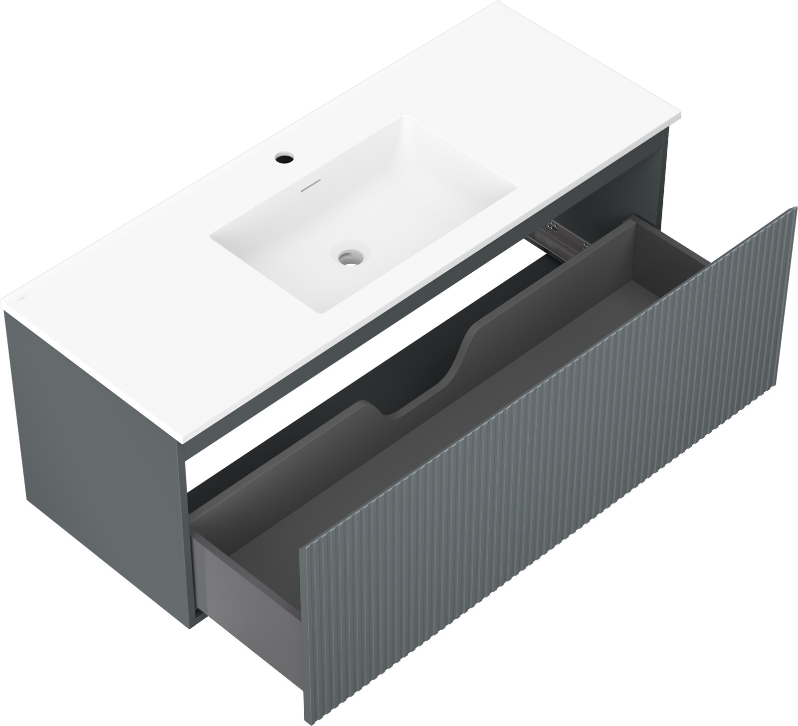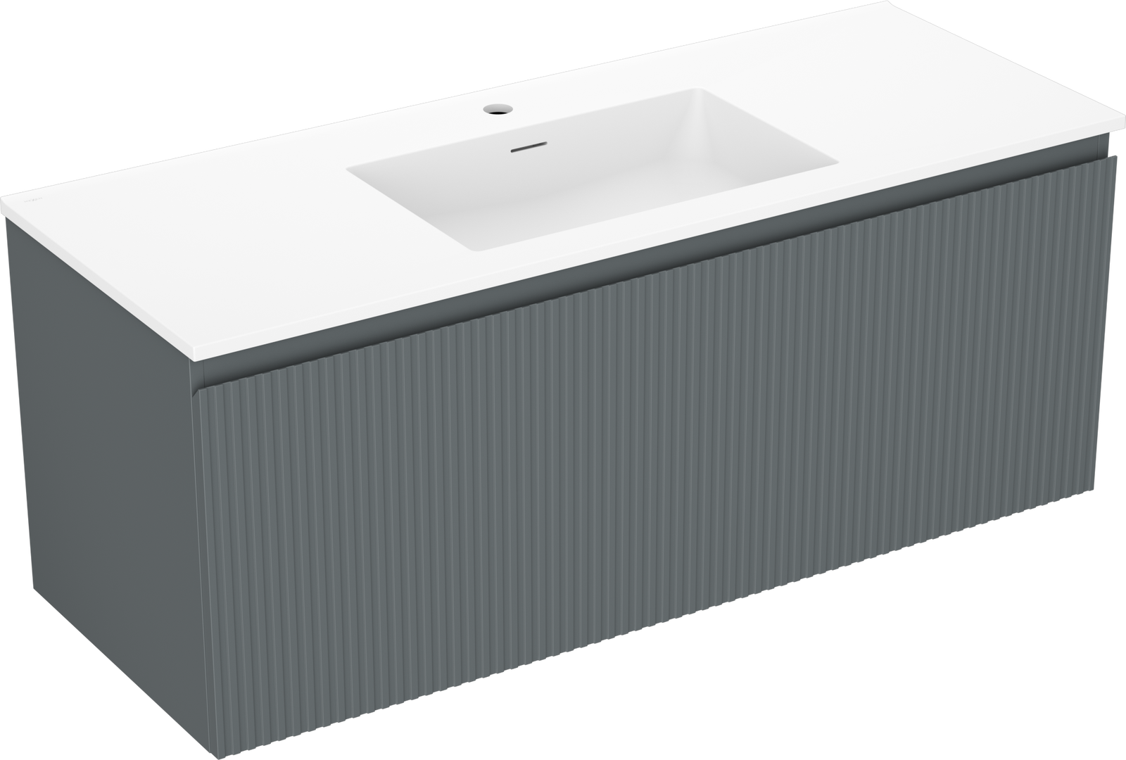 Mexen Rivel koupelnová skříňka 120 cm s umyvadlem Otis, 1 zásuvka, vroubkovaná, grafit mat/bílá mat -