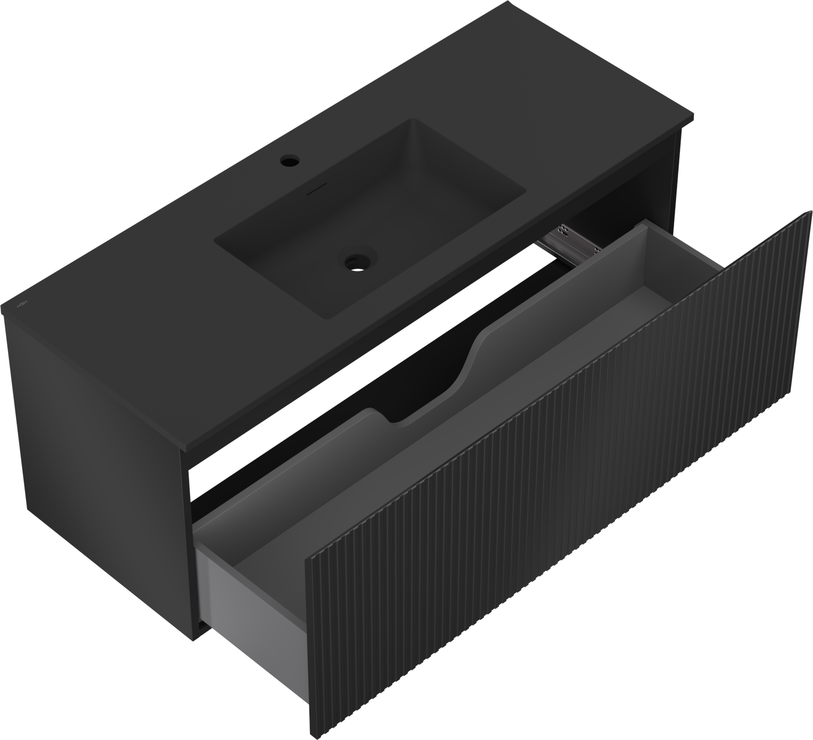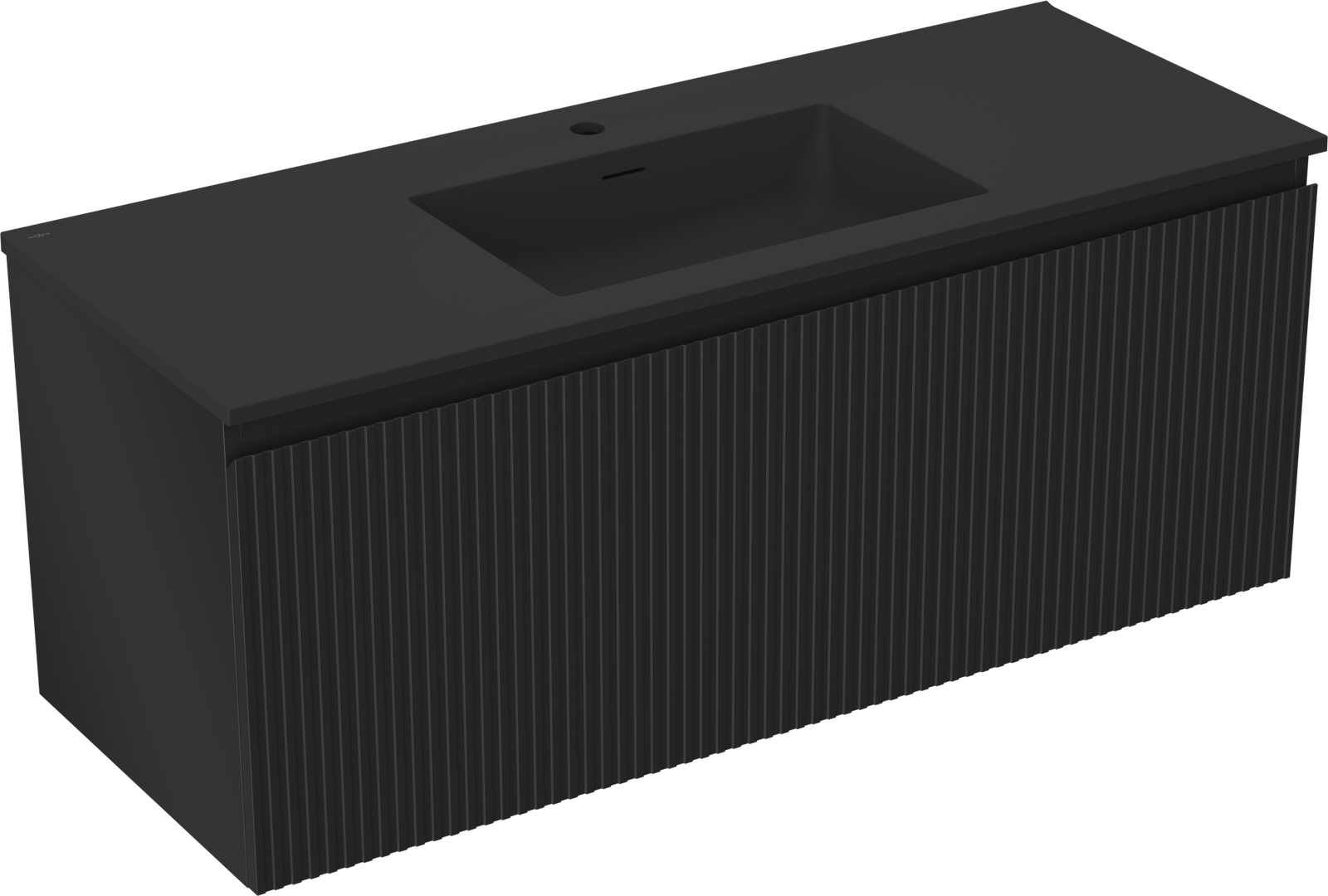 Mexen Rivel koupelnová skříňka 120 cm s umyvadlem Otis, 1 zásuvka, drážkovaná, černý mat - 91A20-12047-1-BF71-W18M71