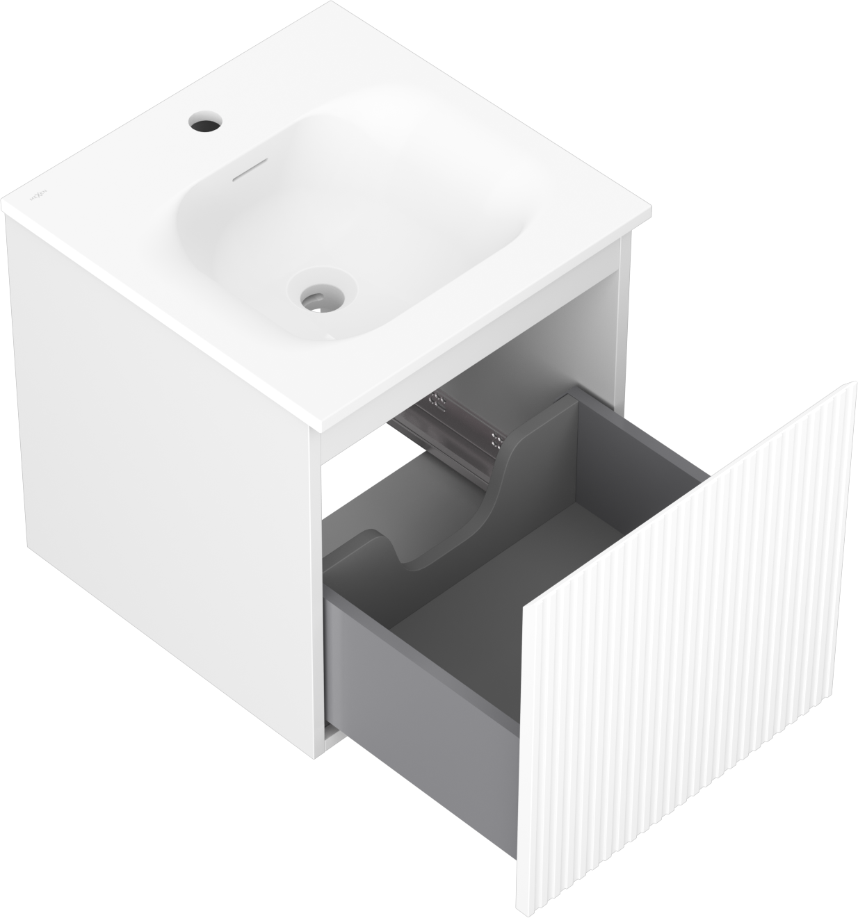 Výřez v zásuvce je navržen tak, aby pojmul sifon, který je nezbytný v instalacích umyvadlových. Díky tomu může být nábytek plně funkčně namontován, aniž by bylo nutné vzdát se prostoru v zásuvce ve prospěch instalace.