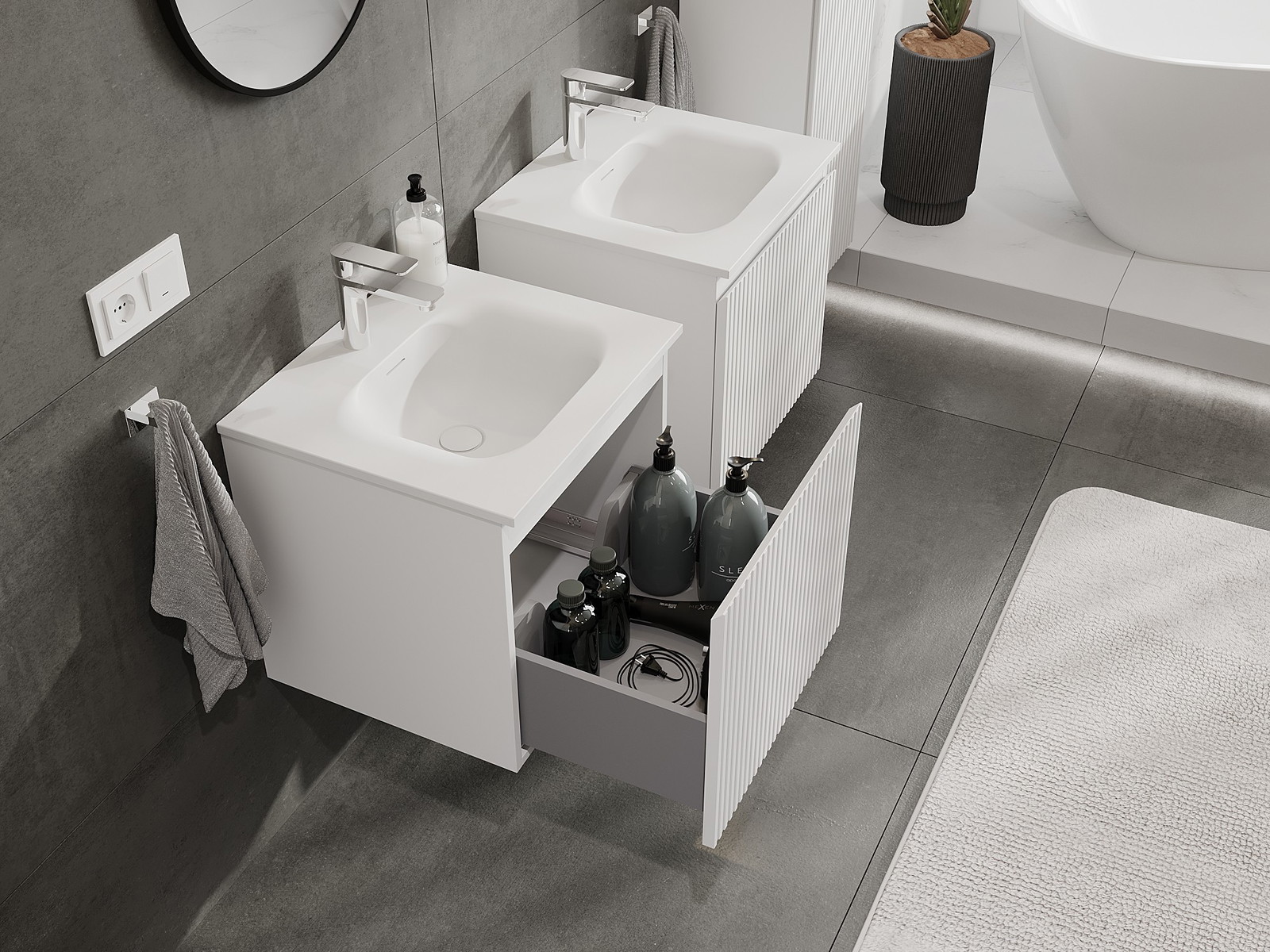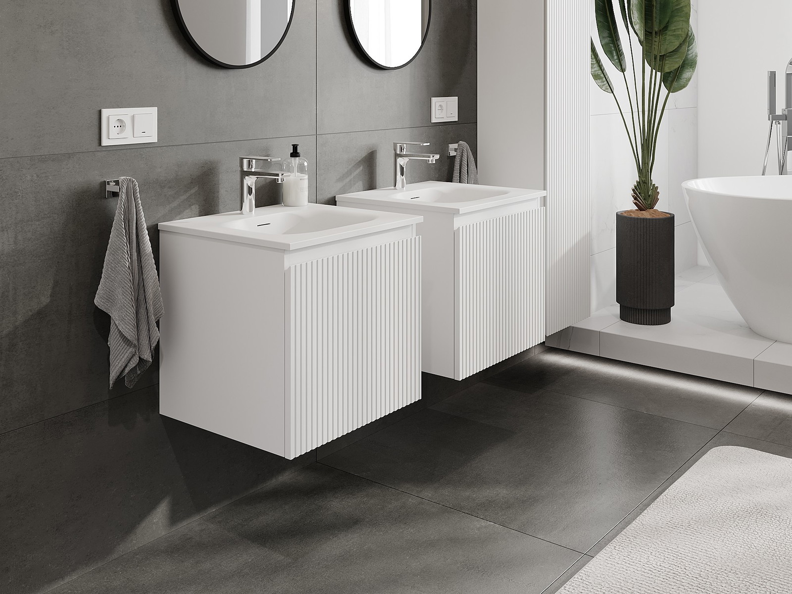 Korpus skříňky je dodáván zcela smontovaný, což znamená maximální pohodlí a úsporu času. Nemusíte ztrácet hodiny skládáním nábytku – stačí jej namontovat na vybrané místo v koupelně. Je to ideální řešení pro osoby, které si cení rychlé montáže a okamžitého efektu.