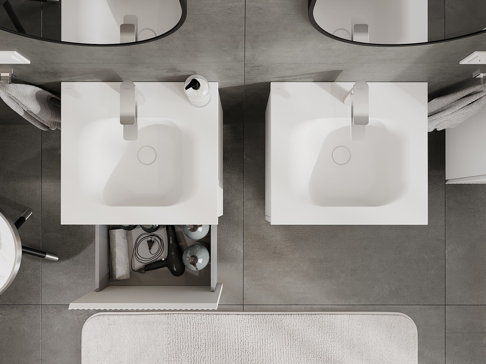 Výřez v zásuvce je navržen tak, aby pojmul sifon, který je nezbytný v instalacích umyvadlových. Díky tomu může být nábytek plně funkčně namontován, aniž by bylo nutné vzdát se prostoru v zásuvce ve prospěch instalace.