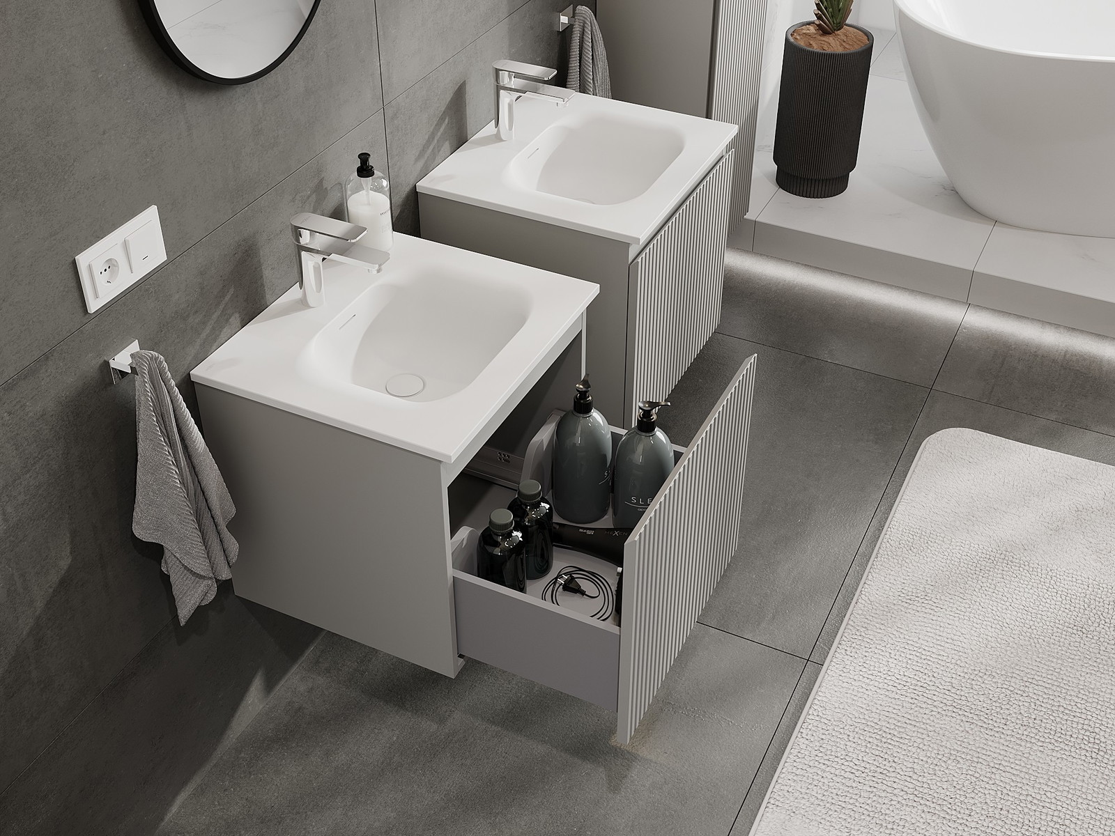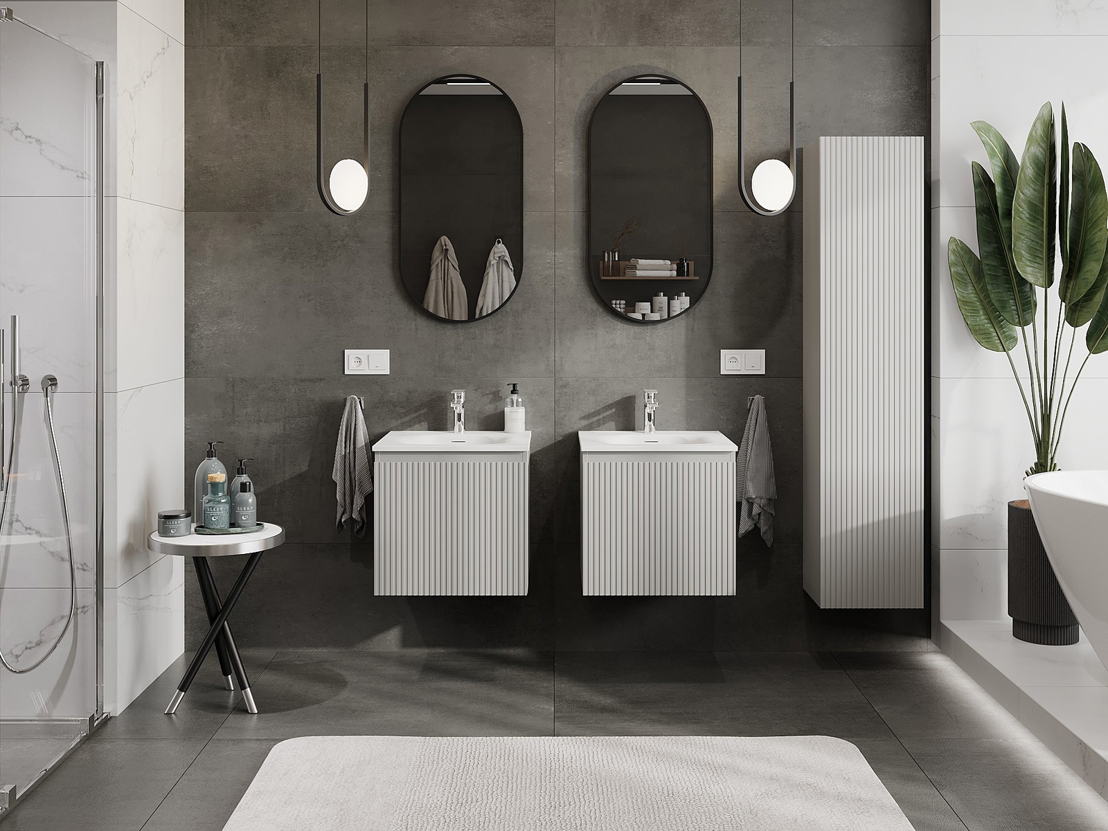 Korpus skříňky je dodáván zcela smontovaný, což znamená maximální pohodlí a úsporu času. Nemusíte ztrácet hodiny skládáním nábytku – stačí jej namontovat na vybrané místo v koupelně. Je to ideální řešení pro osoby, které si cení rychlé montáže a okamžitého efektu.