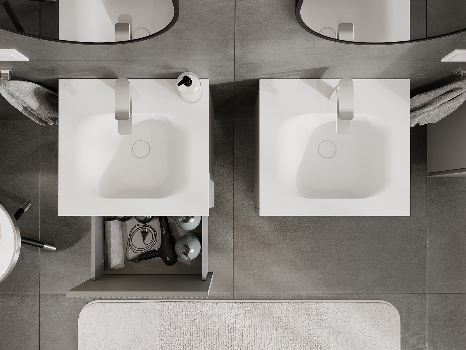 Výřez v zásuvce je navržen tak, aby pojmul sifon, který je nezbytný v instalacích umyvadlových. Díky tomu může být nábytek plně funkčně namontován, aniž by bylo nutné vzdát se prostoru v zásuvce ve prospěch instalace.