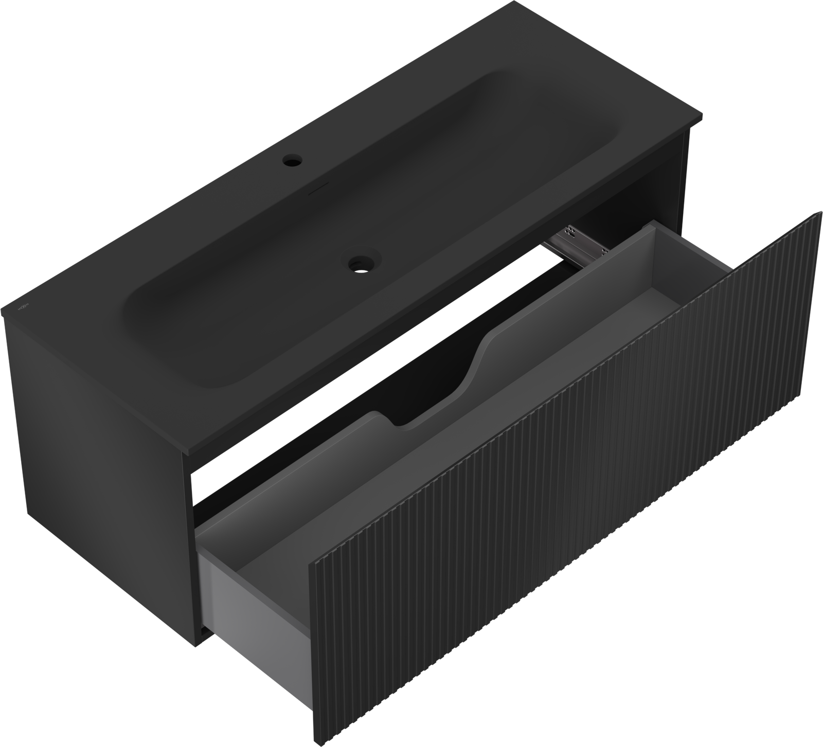 Výřez v zásuvce je navržen tak, aby pojmul sifon, který je nezbytný v instalacích umyvadlových. Díky tomu může být nábytek plně funkčně namontován, aniž by bylo nutné vzdát se prostoru v zásuvce ve prospěch instalace.