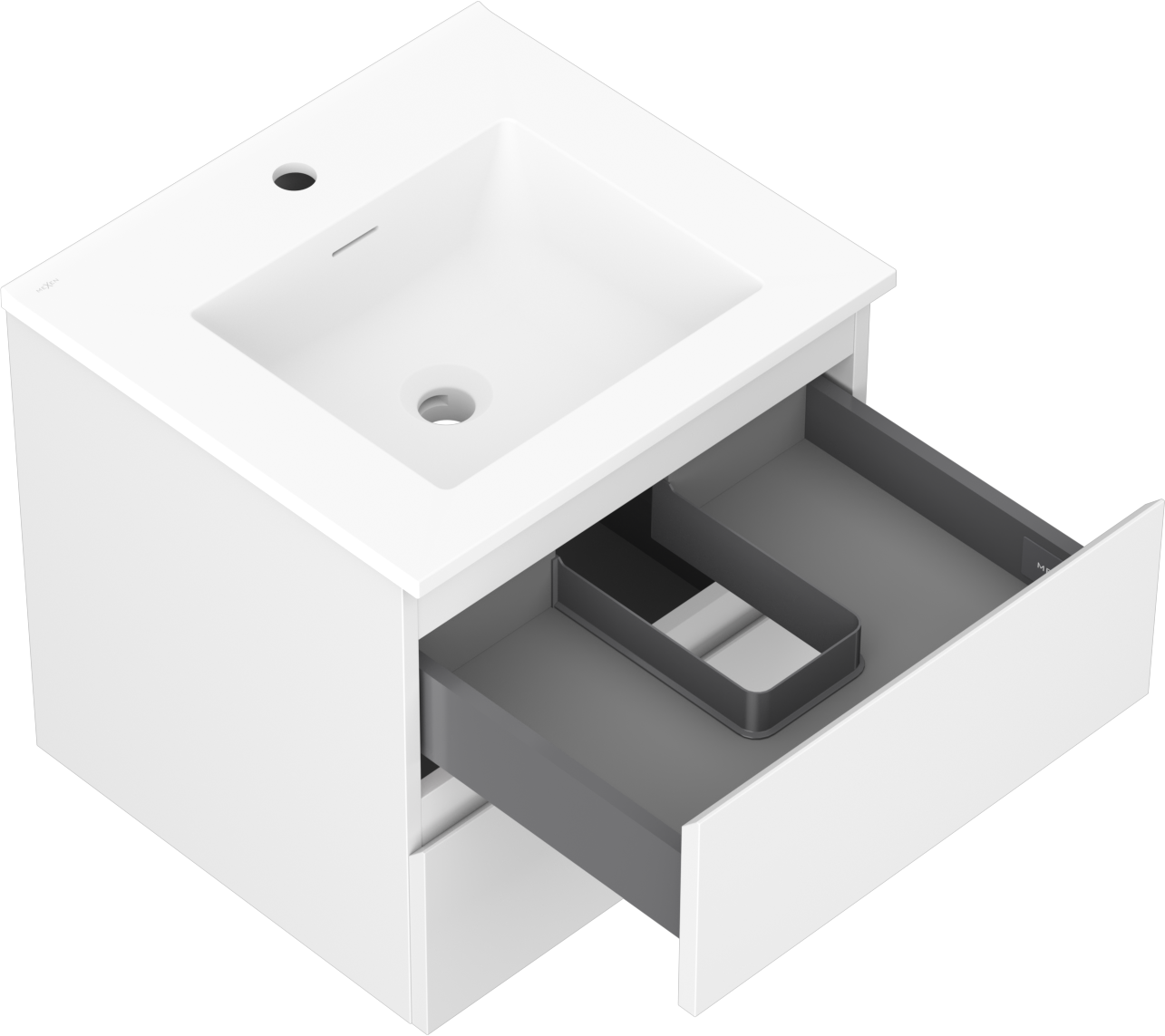 Výřez v zásuvce je navržen tak, aby pojmul sifon, který je nezbytný v instalacích umyvadlových. Díky tomu může být nábytek plně funkčně namontován, aniž by bylo nutné vzdát se prostoru v zásuvce ve prospěch instalace.