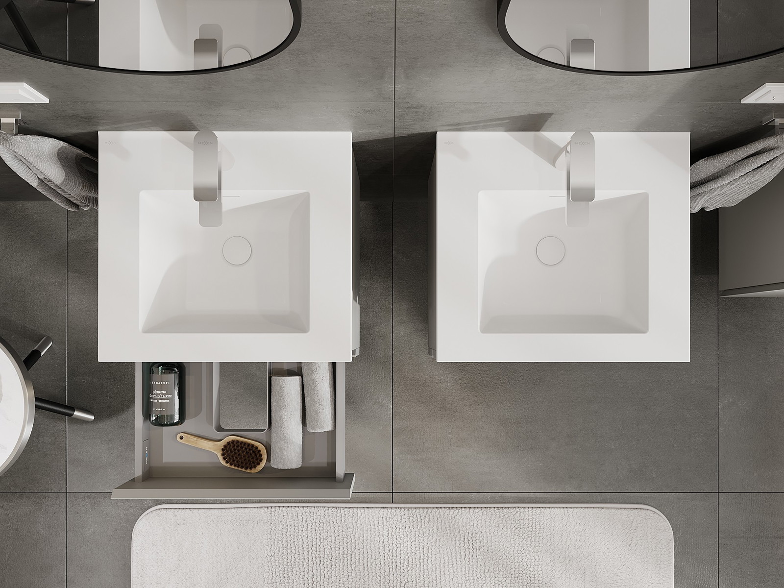 Naše modulární koupelnový nábytek lze kombinovat v různých barevných konfiguracích, což umožňuje plnou personalizaci. Můžete si vybrat jak vzhled, tak funkce jednotlivých prvků, což umožňuje přizpůsobit nábytek vašim stylovým a uživatelským preferencím.