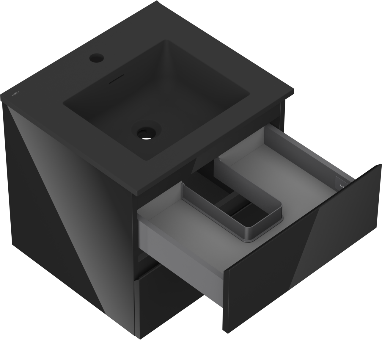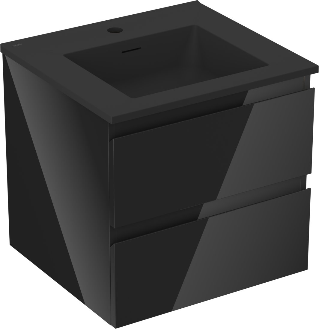 Mexen Orio koupelnová skříňka 50 cm s umyvadlem Otis, 2 zásuvky, černý lesk/černý mat - 91A10-05047-2-BFF70-W18M71