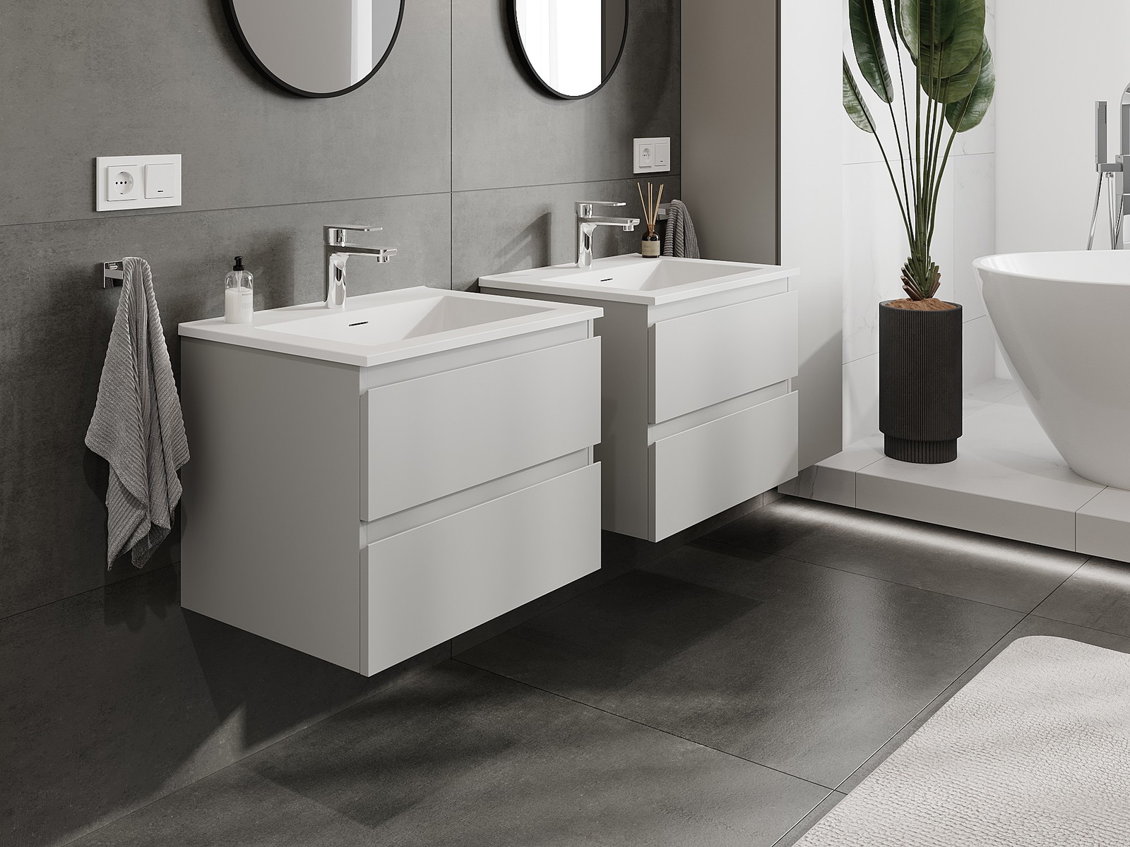 Naše modulární koupelnový nábytek lze kombinovat v různých barevných konfiguracích, což umožňuje plnou personalizaci. Můžete si vybrat jak vzhled, tak funkce jednotlivých prvků, což umožňuje přizpůsobit nábytek vašim stylovým a uživatelským preferencím.